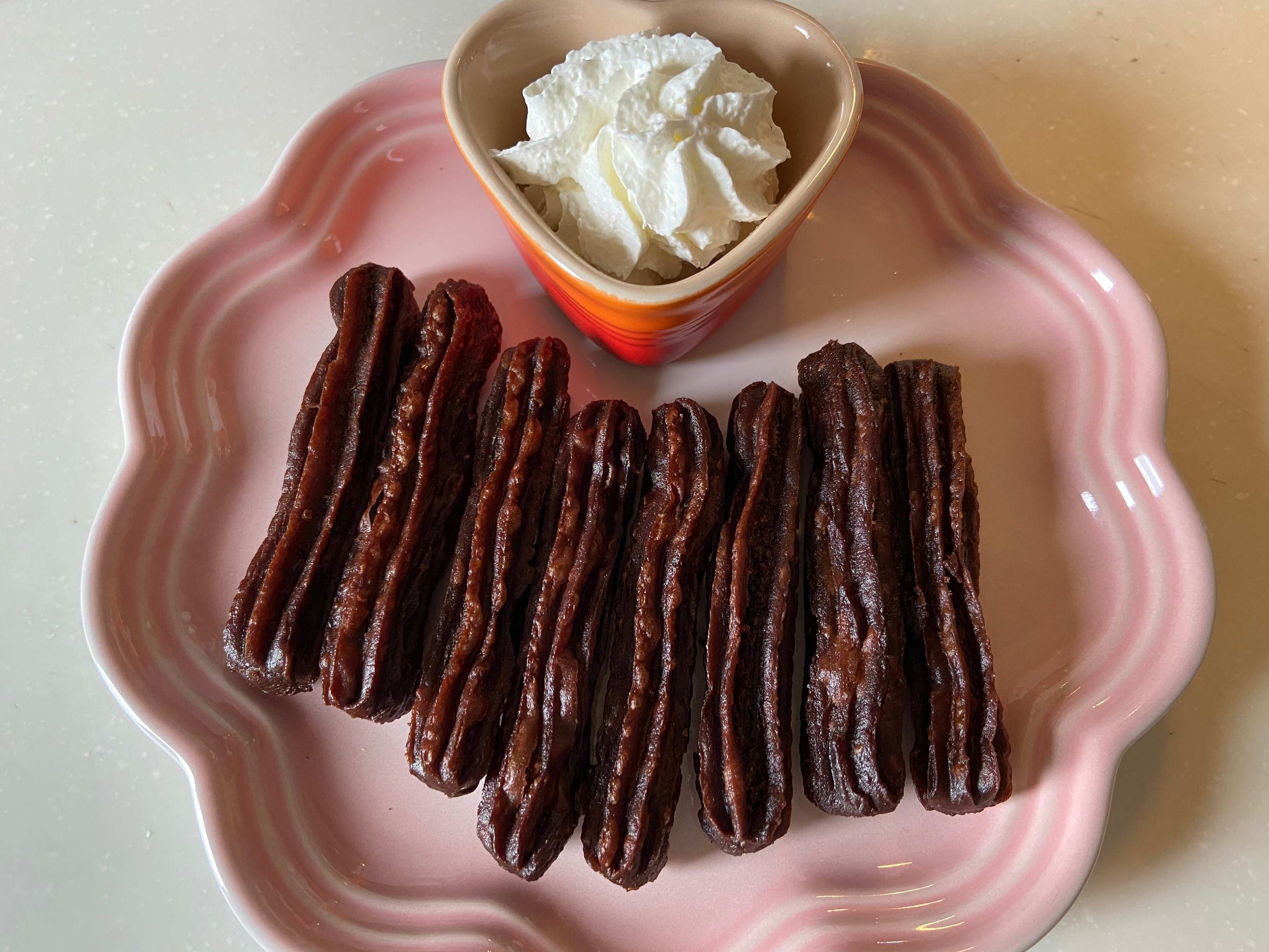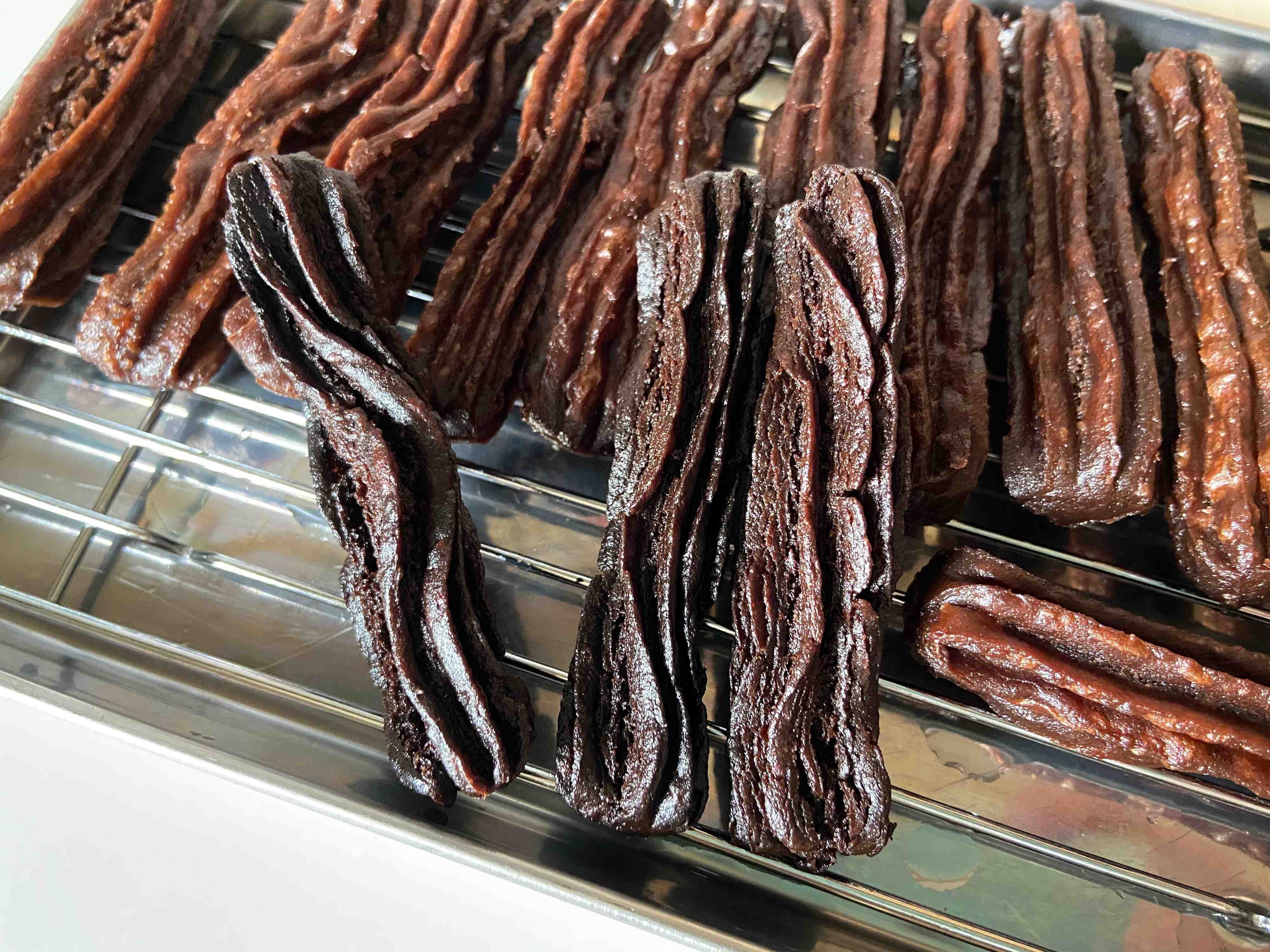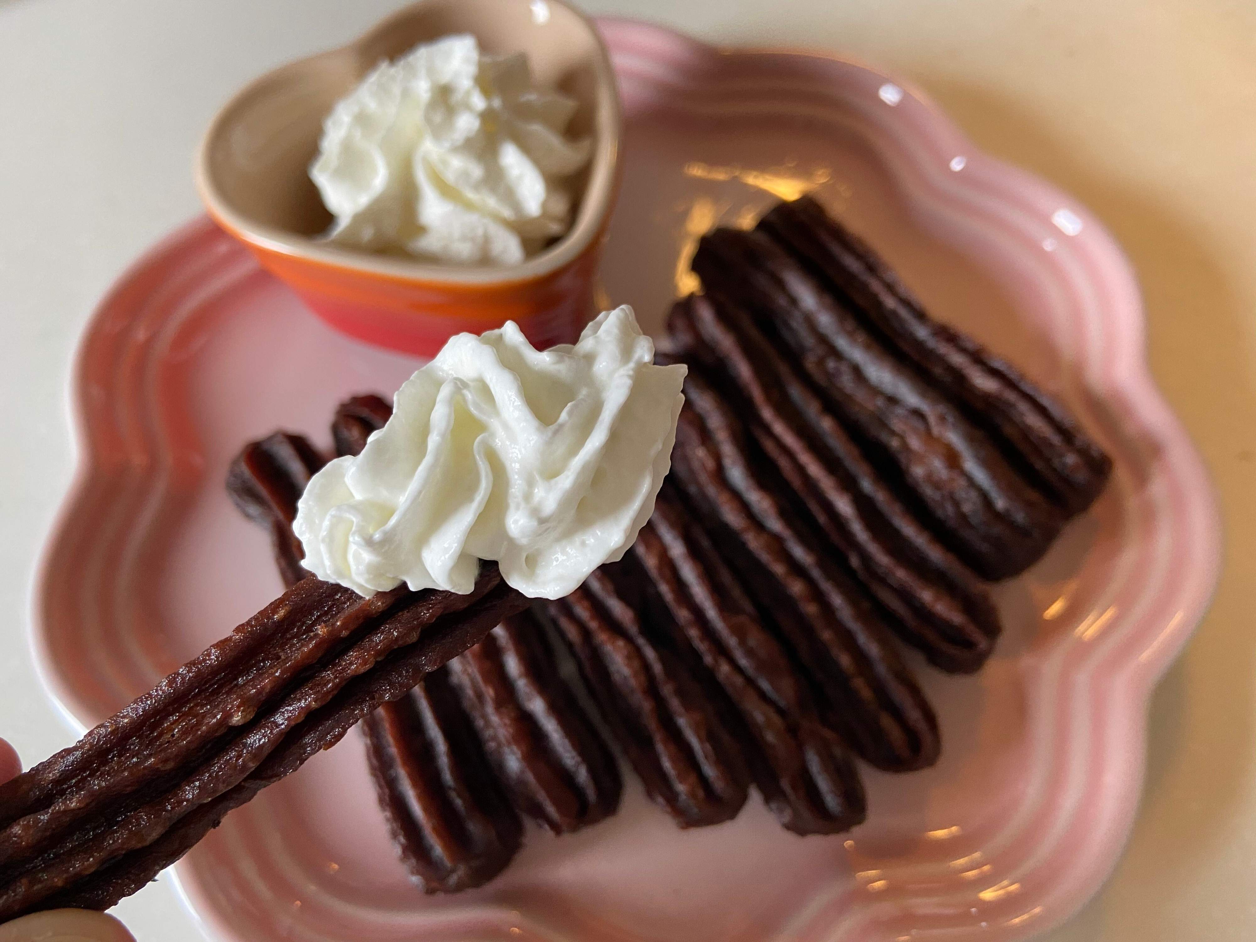 3分間揚げて、外はカリッと中はしっとりもっちり仕上がったチョコチューロスです。食べてみるとカカオの風味がふわっと広がり香ばしくてとってもおいしい!