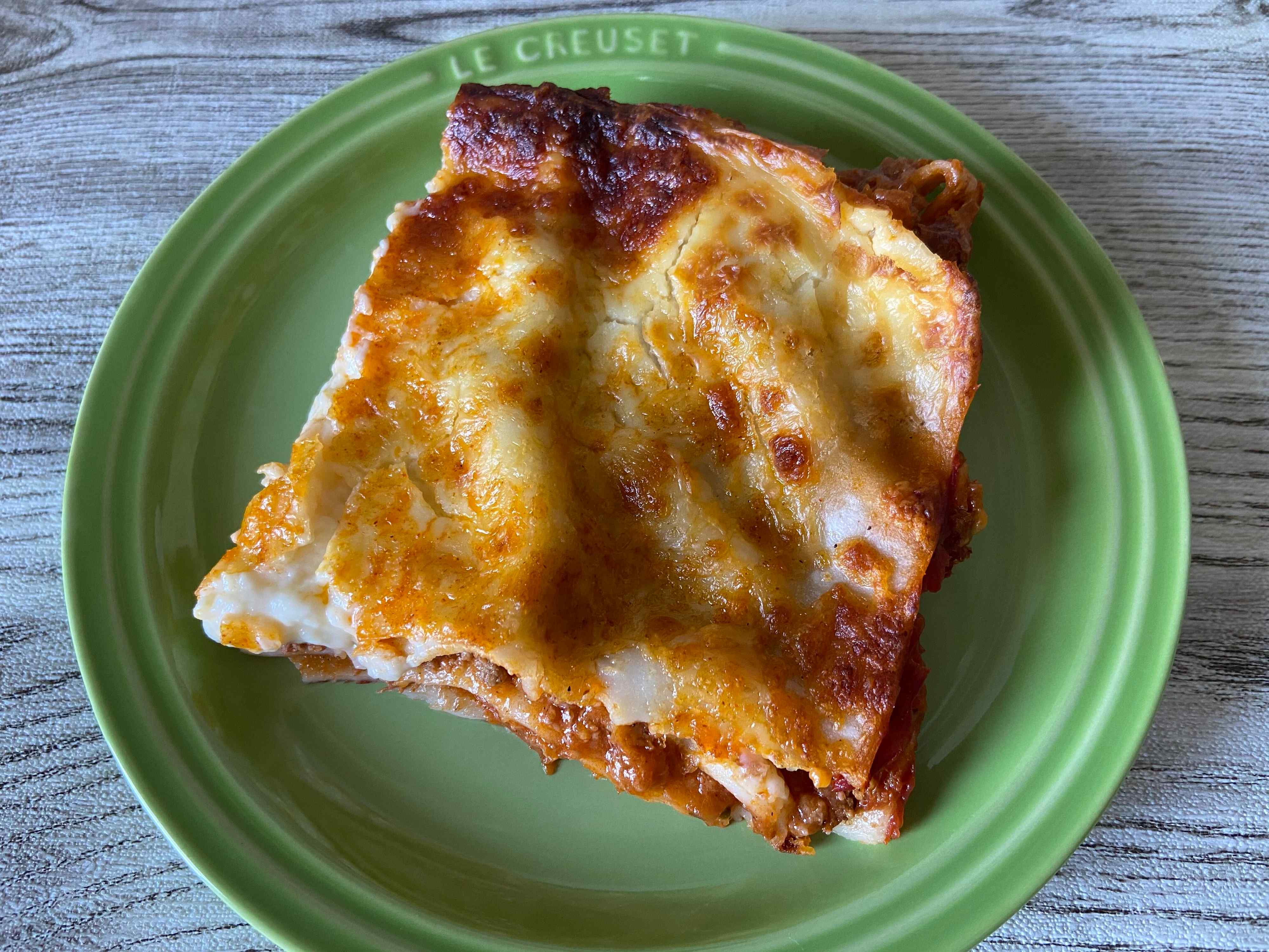 オーブンの予熱が終了し、透明フィルムを全て剥がしたら準備はOK、オーブン200℃で50分間焼きます。焼き時間はとても長いように感じますが、その間に他の調理をしたりなにか別のことをできるので効率もUP。焼き上がったら、そのまま2分間放置して完成です。もっちりとした食べ応えのあるラザニアにビーフたっぷりのミートソースとコクのあるベシャメルソース、層になった食感と濃厚な味わいがたまりません。