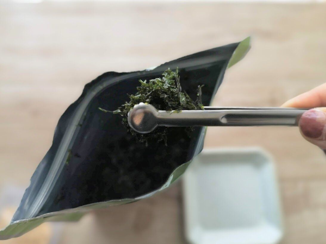 板海苔タイプなら少し崩してのせると食べやすく、韓国のりフレークならば、そのままで大丈夫!