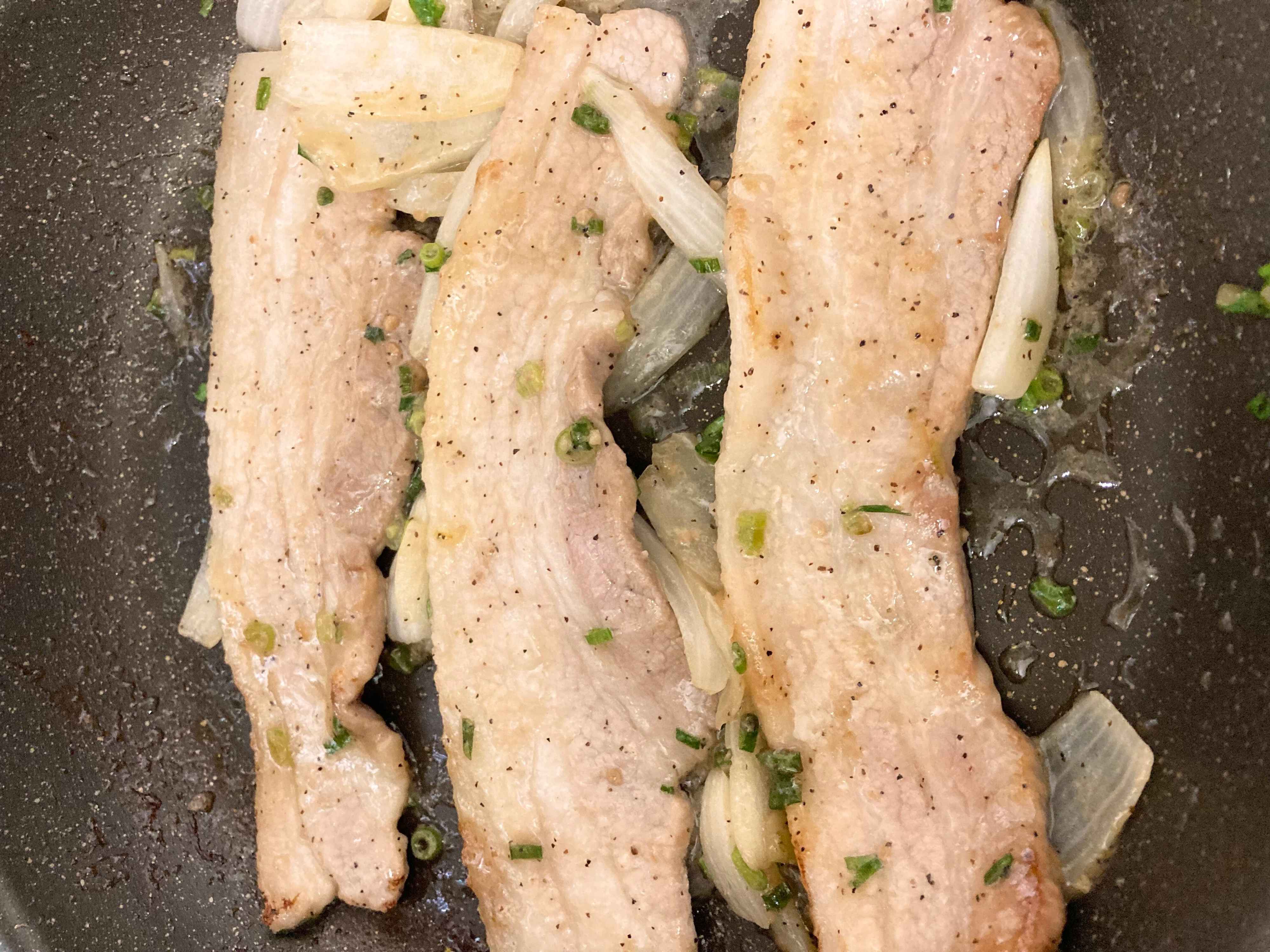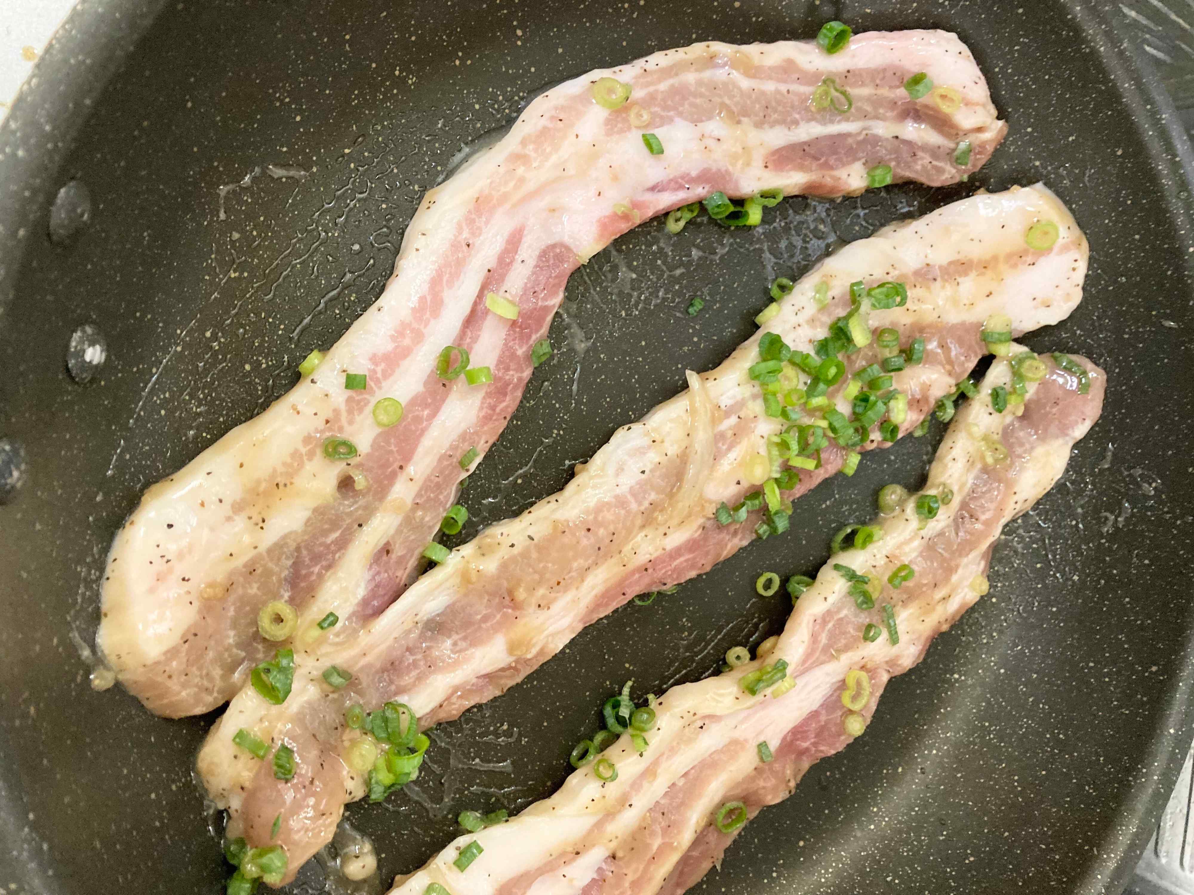 味付きのお肉のため、焦げやすく、トッピングのネギも入っているためとても脂がはね火傷しないようご注意を。揚げ物に使用できる、オイルスクリーン(油はね防止ネット)を使用するとお肉はカリッと焼け油はねが防げるので、持っている方は使用してみてくださいね。