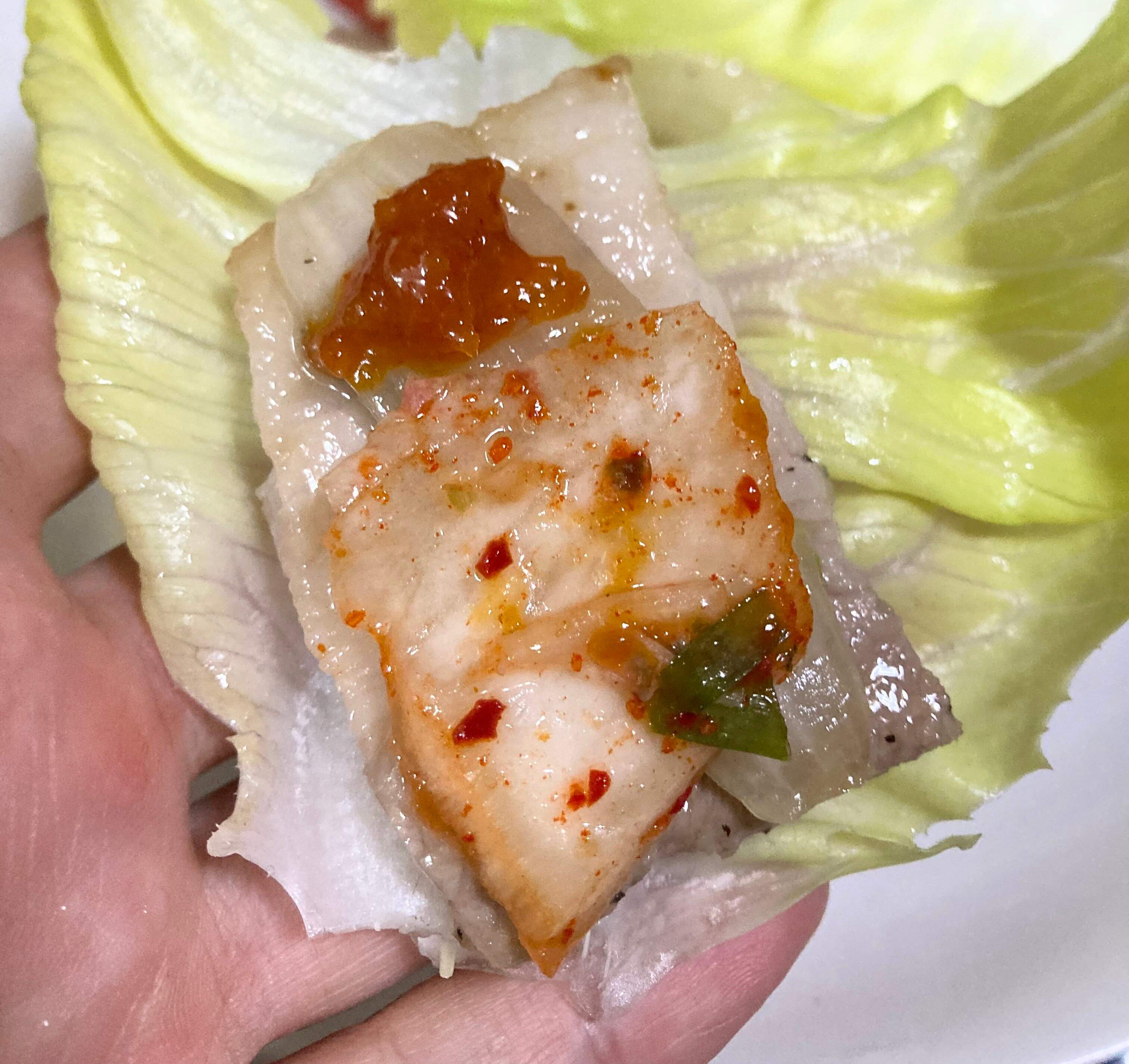 脂がしっかりしたサムギョプサルですが、コストコのロメインレタスと食べるとさっぱり食べられ個人的には1番好きな組み合わせでした。