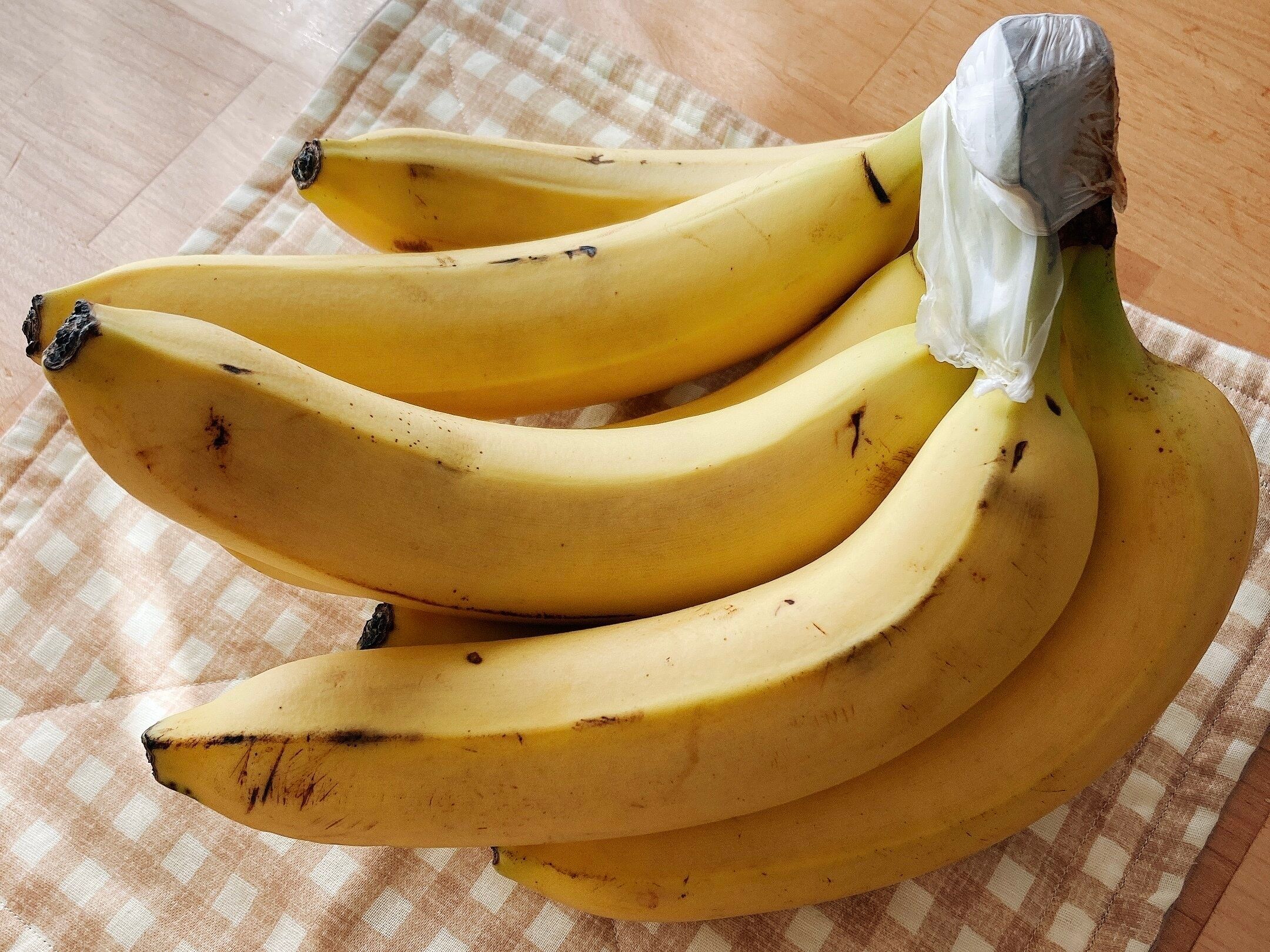 すぐに食べない分は皮をむいて、半分に折って、1つずつラップに包んで冷凍庫に入れて、スムージーに使用しています。