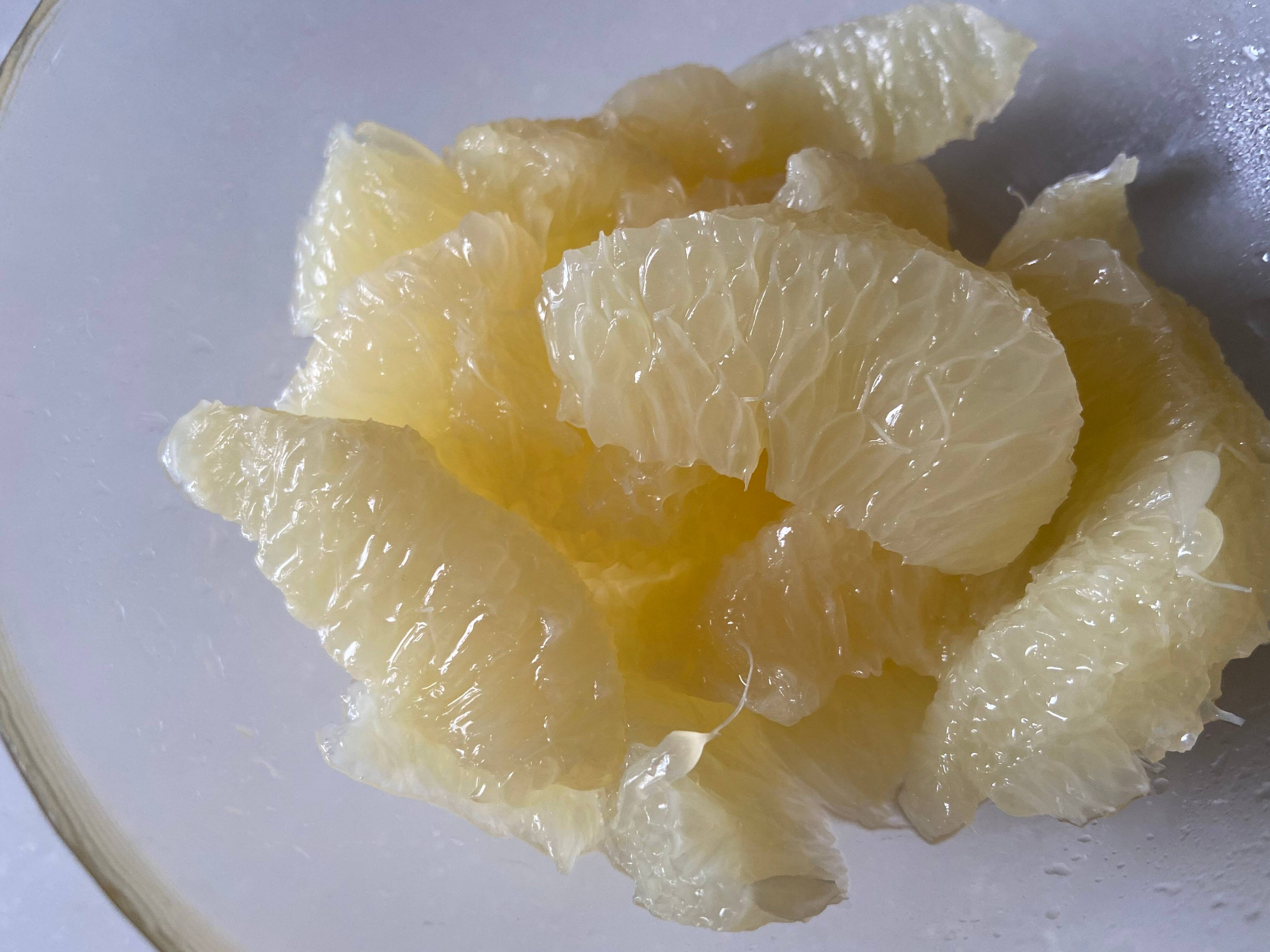 生だと酸味や苦みが感じられるグレープフルーツを食べやすくやさしい甘さのシロップ漬けにした商品です。