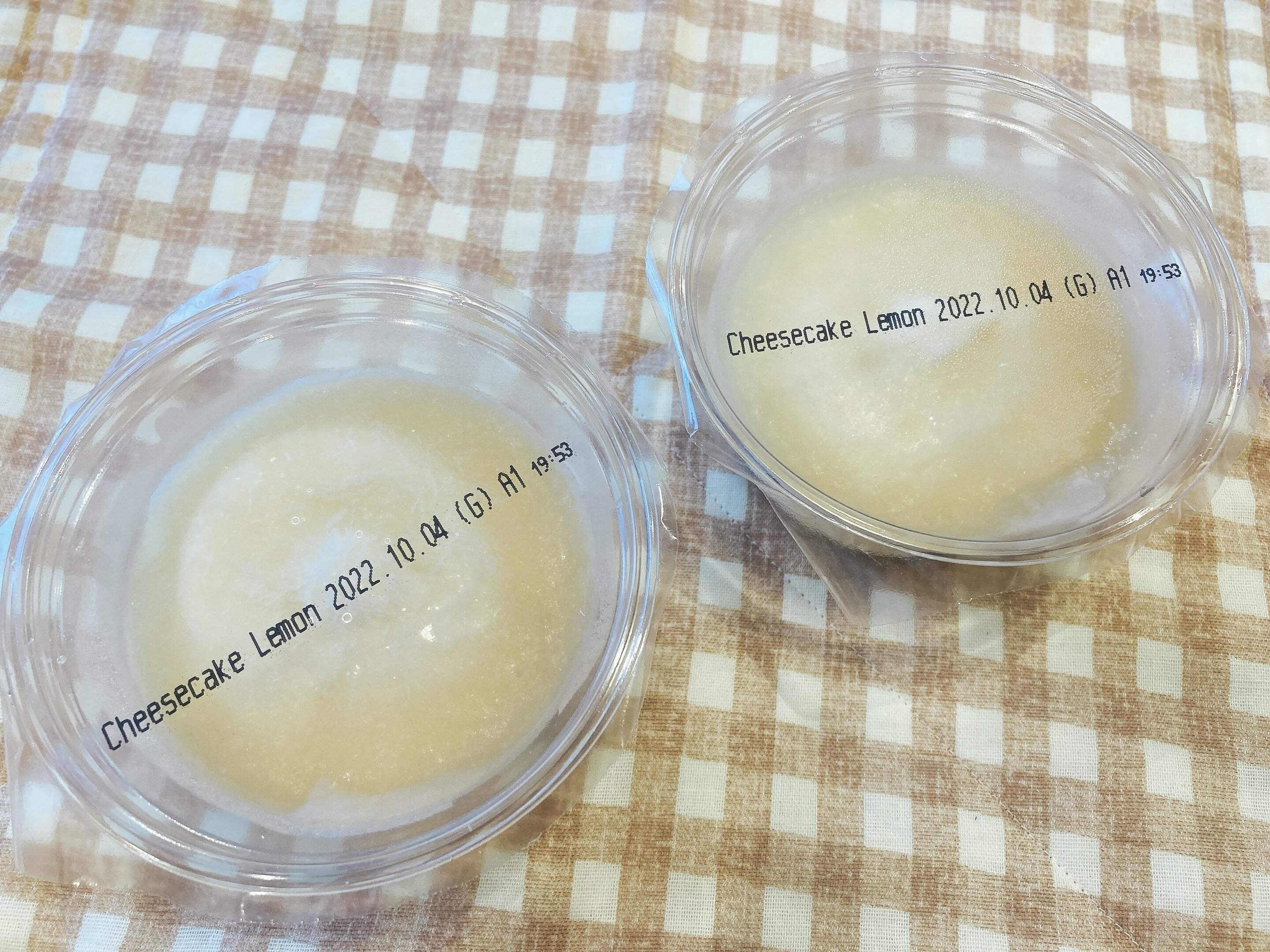 イタリア直輸入、冷凍デザートの、レモンチーズケーキ、2カップ入りで278円です。
