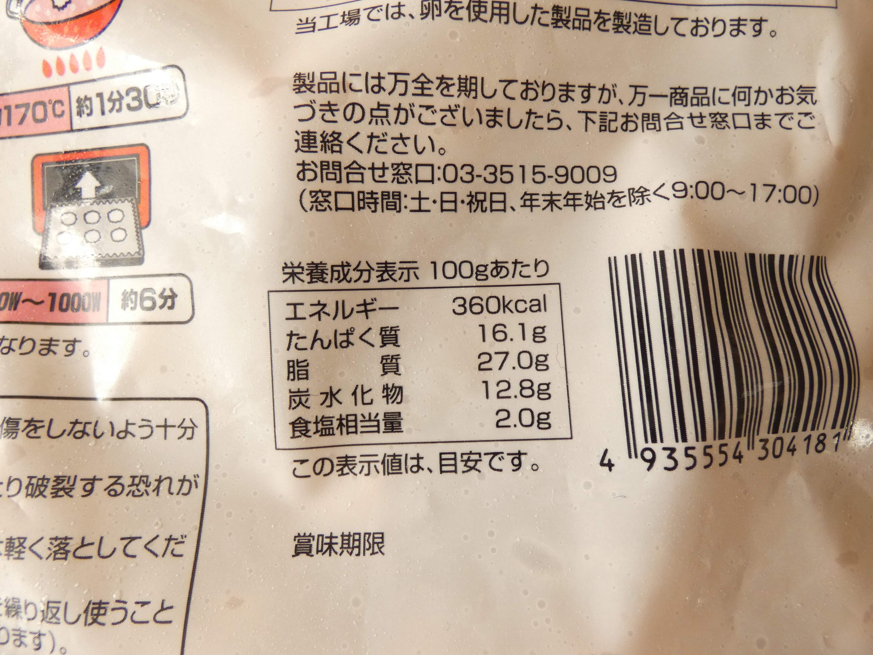 栄養成分表示を見ると100gあたりのエネルギーは360kcalです。