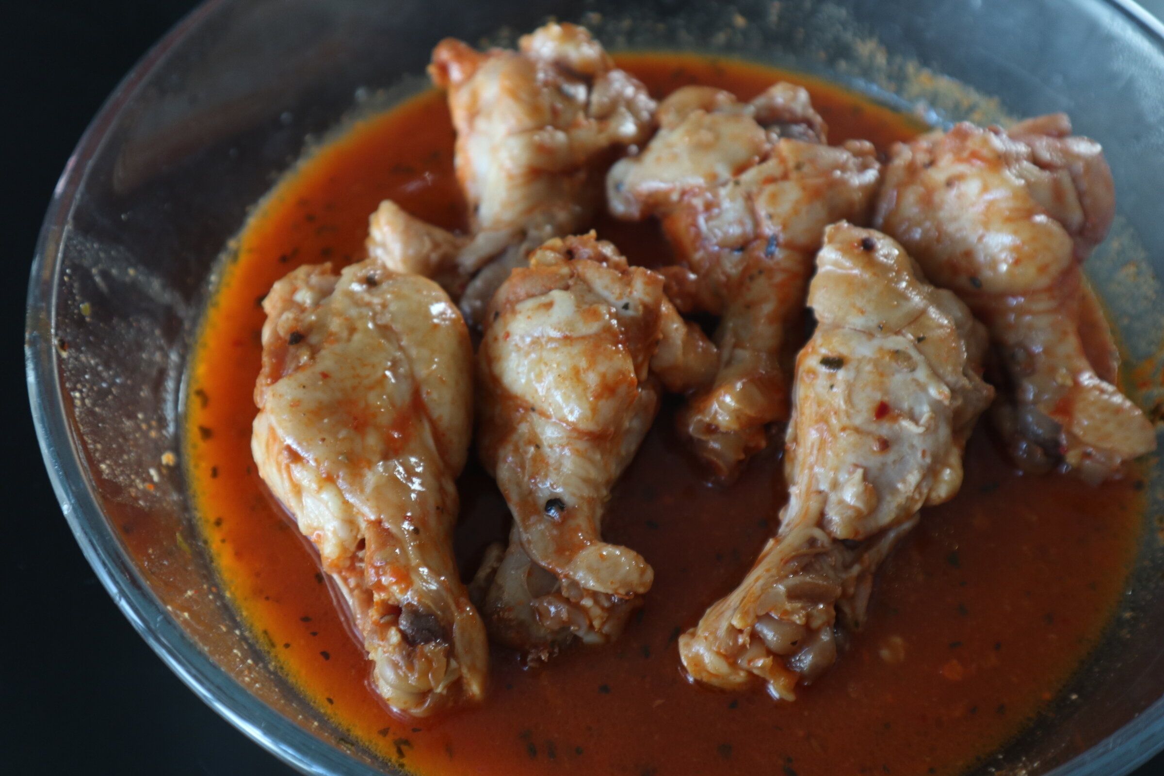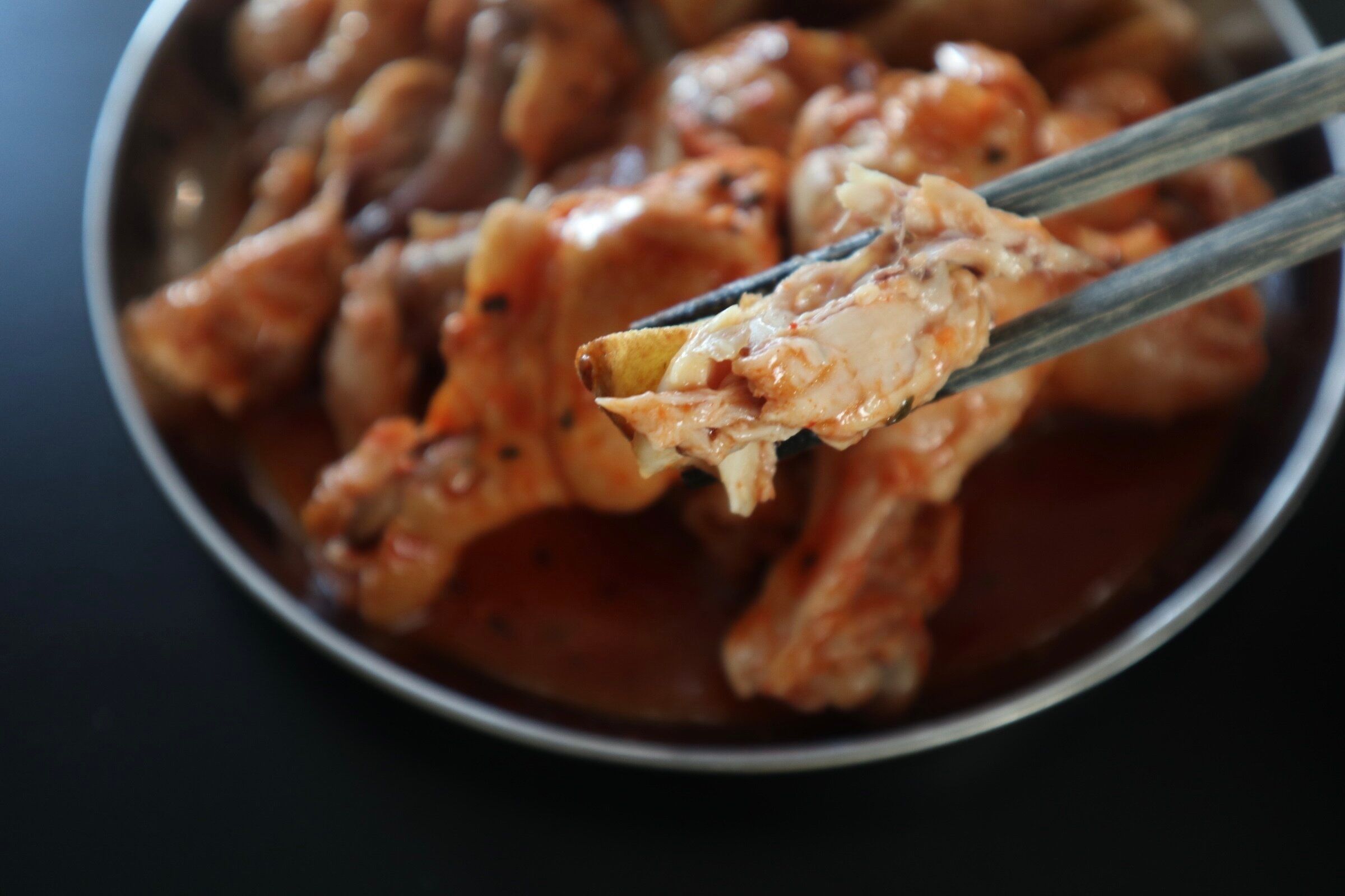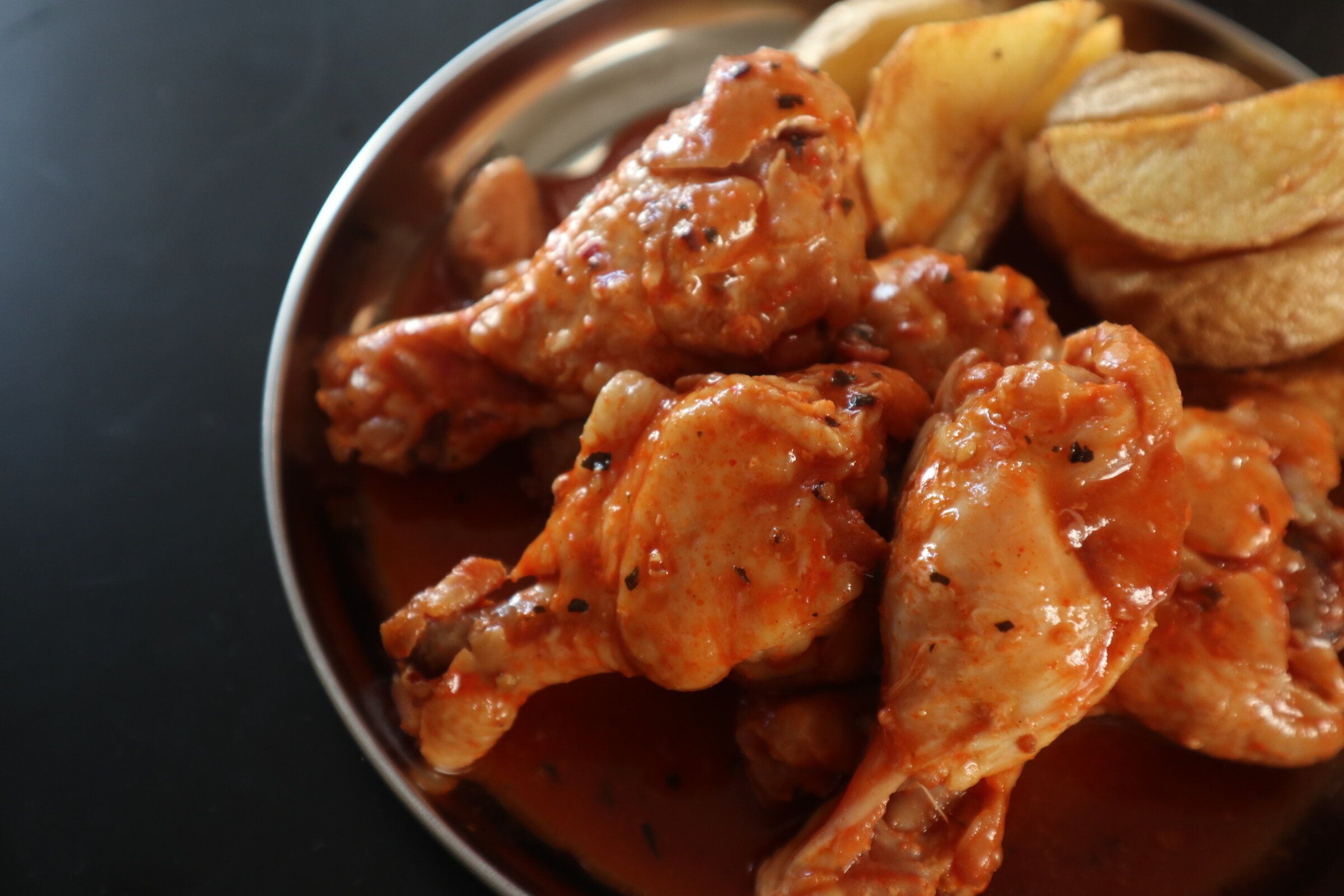 骨つき手羽元を使っています。キムチの素を使っているので、さっぱりとしたスッキリした辛さです。ニンニクも効いているのでクセになります。