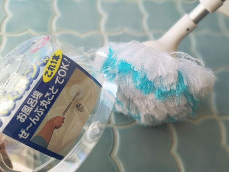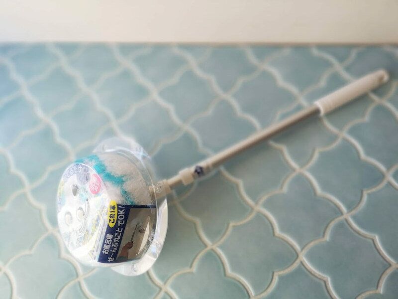 柄の部分が伸縮するので、長く伸ばせば、天井にも軽々届くので、スイスイお掃除ができ、浴槽もかがまなくても洗うことができます。