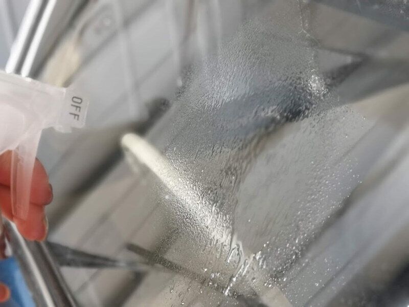 使い方はいたって簡単で、汚れたメガネを水でさっと濡らし、クリーナーを吹き付け、付属のメガネ拭きで拭き取るだけ。