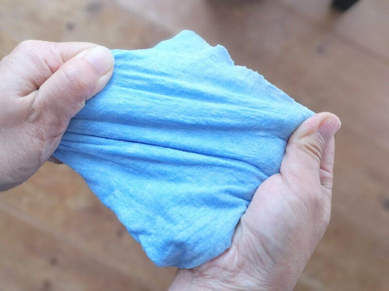 水で濡らしてギュッと絞ることもでき、ギューギュー引っ張ってもちぎれないので、すすぎながら繰り返し使うこともできます。