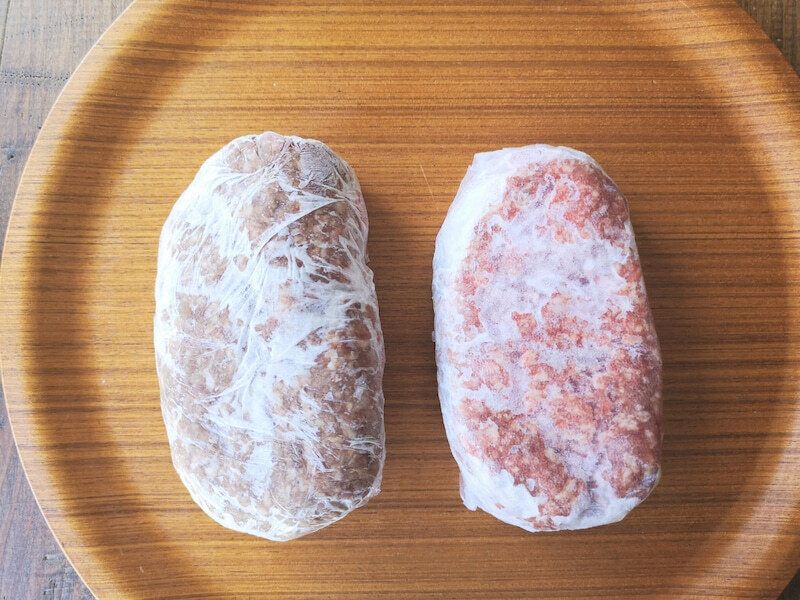 ラップのものと、プレスアンドシールで包んだひき肉の色の変化の違いには、びっくりしました。