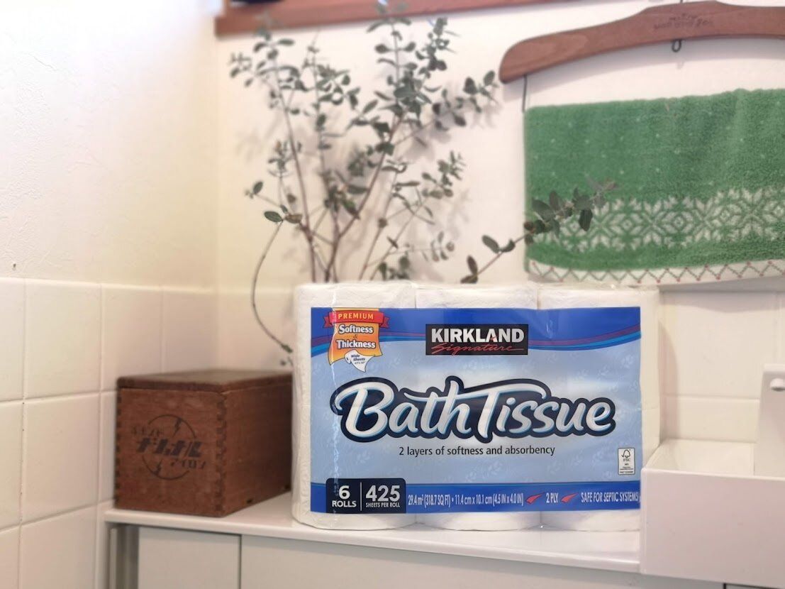 売り場で目の当たりにすると、そのパッケージの大きさに「どうやって収納しよう?」といささか悩んでしまうような見た目ですが、中身は6ロールずつ個包装になっているので、日本のトイレの収納にも十分おさまるサイズ感です。