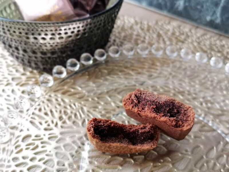 ジュッワンっとアーモンド香るフィナンシェにも似た焼き菓子で、中央にはカスタードクリーム風のチョコフィリングが入っています。