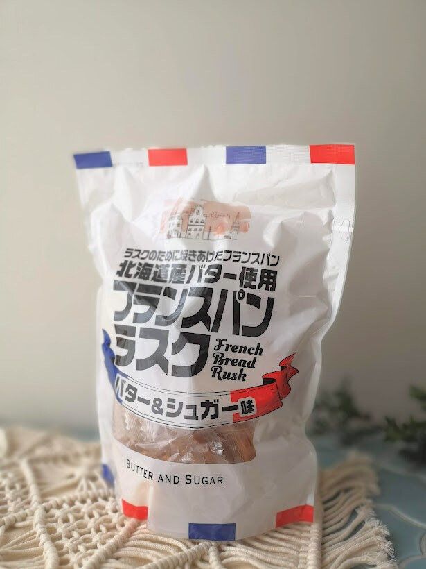 こちらは、ラスク用に焼き上げたフランスパンを使用し、北海道産バターを使って仕上げたラスクです。