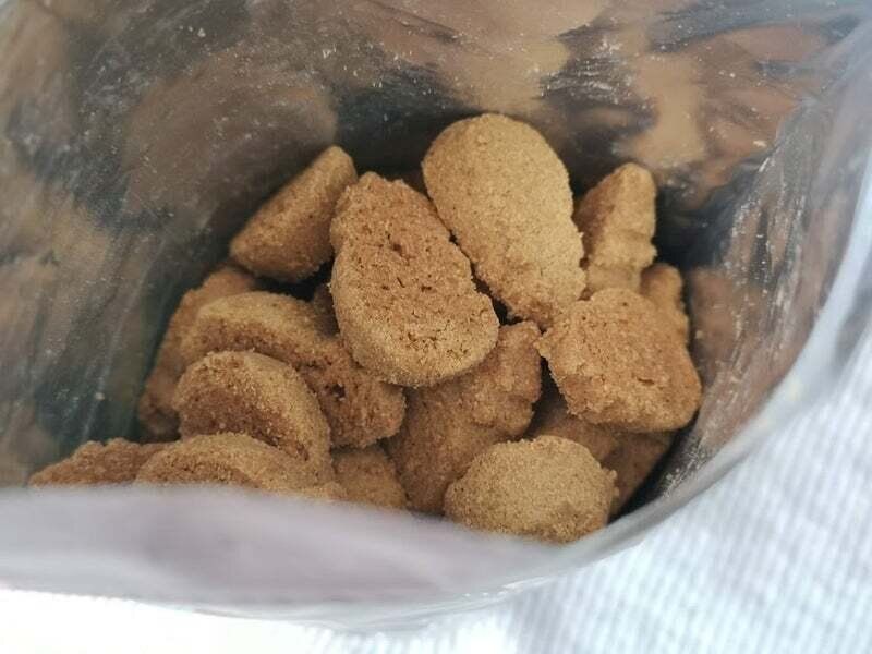 ナッツをチョコレートでふわっと固めたような商品で、1つあたりの大きさはちょっと不ぞろいで、小さいものは2cmぐらい、大きなものは5cm以上の塊もありました。