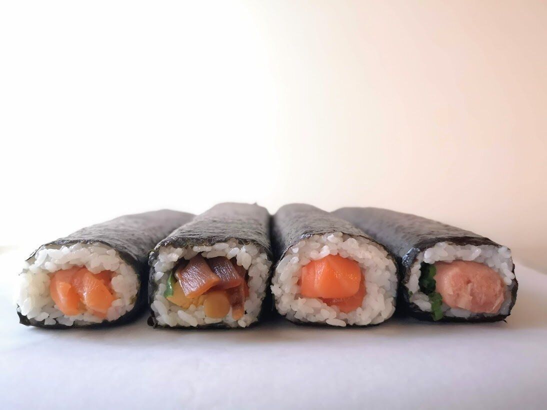 左から、海鮮巻・田舎巻・サーモン巻・ねぎまぐろ巻の4種類