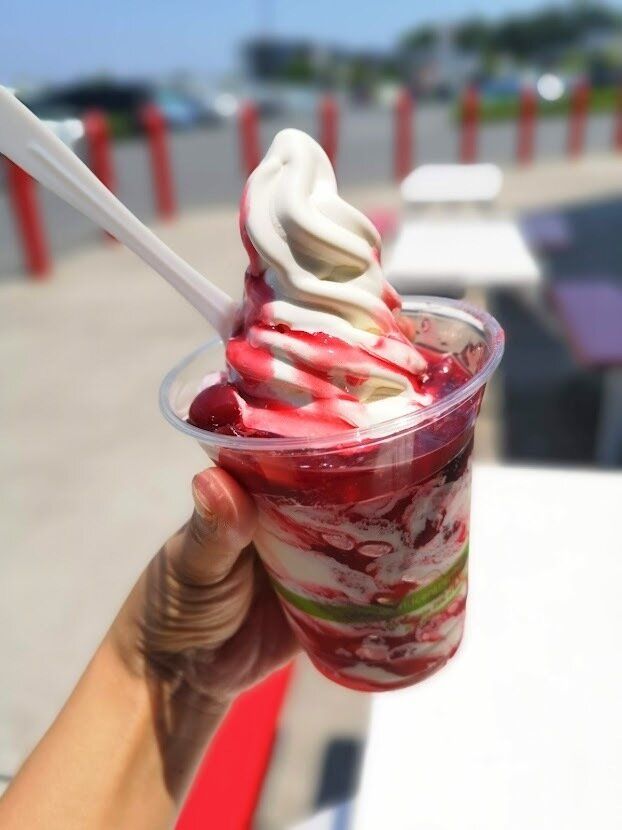 キュンと酸っぱいソースとソフトクリームのクリーミーさが絶妙!最高においしい!