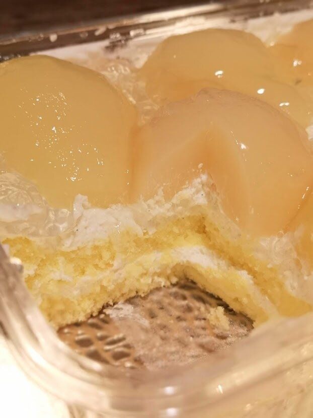 とにかく目にも色鮮やかな、角切りマンゴーがたっぷりのったスコップケーキ!ずっしりと重く、手にとってびっくりした一品。