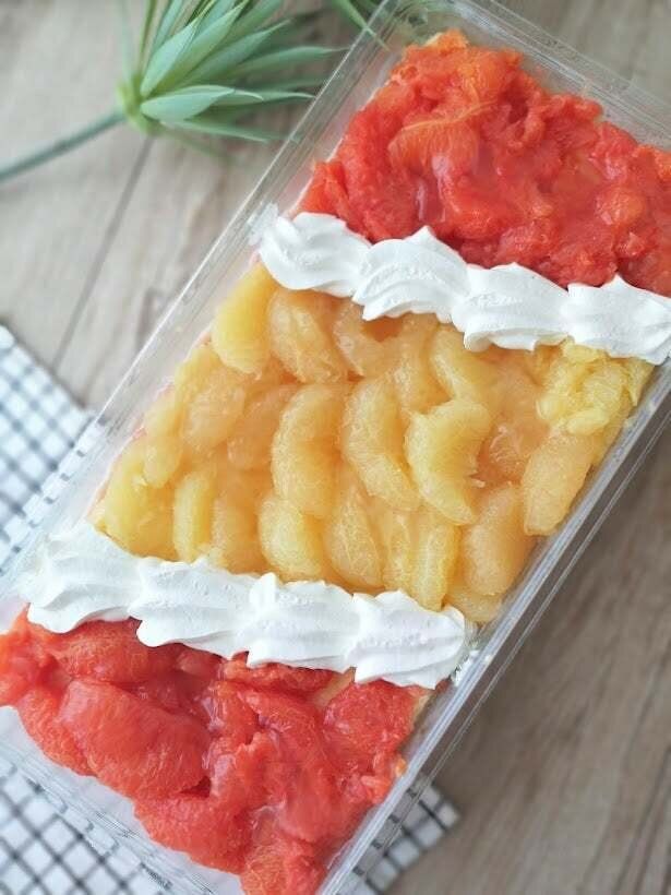 見た目はかなり甘そうなビジュアルですが、実際にはフルーツのほうが多いんじゃないかな?というようなケーキなので、甘すぎない分、夏でもさらりといただけますよ♪