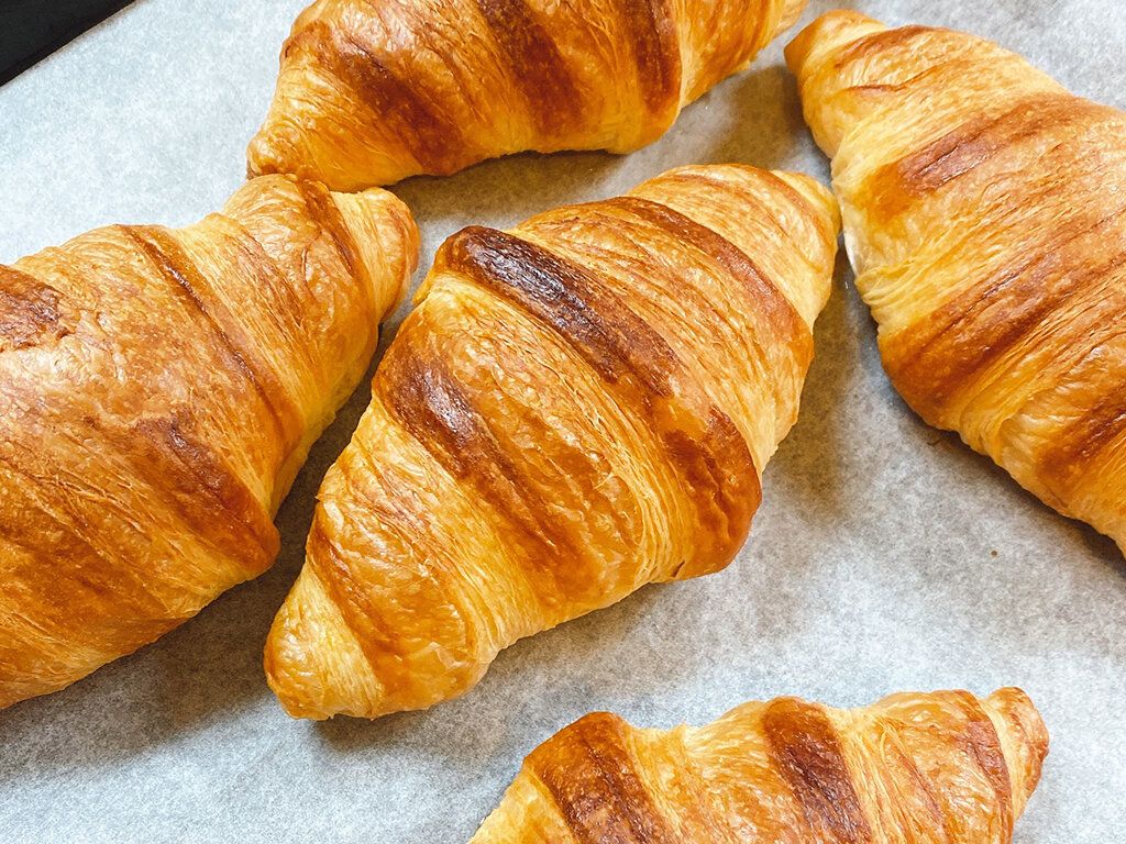 室温で30分程度解凍してオーブンで25分焼くとパン屋のクロワッサンのように外はサクサク、
