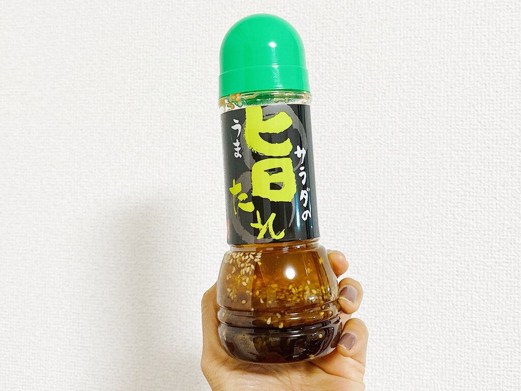 「もへじ」から出ている、ごまとにんにくの香りがとても良いドレッシング。カルディ好きなら必ず持ってる……とも噂される、万能調味料です。私ももう何本目かわからないくらい愛用してます。