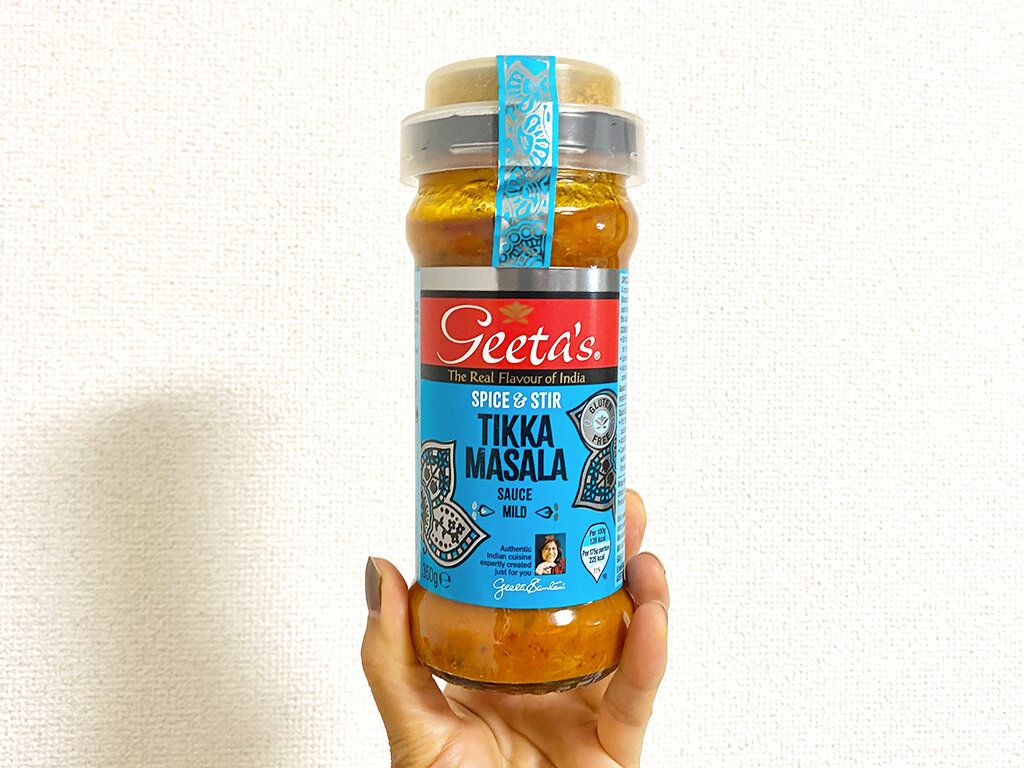 ギータ ティッカマサラというイギリスでは人気NO1のカレー。上にスパイス、下にソースでこれ一本で本場のカレーになります。店舗で売っていてもすぐに売り切れちゃうそうです。