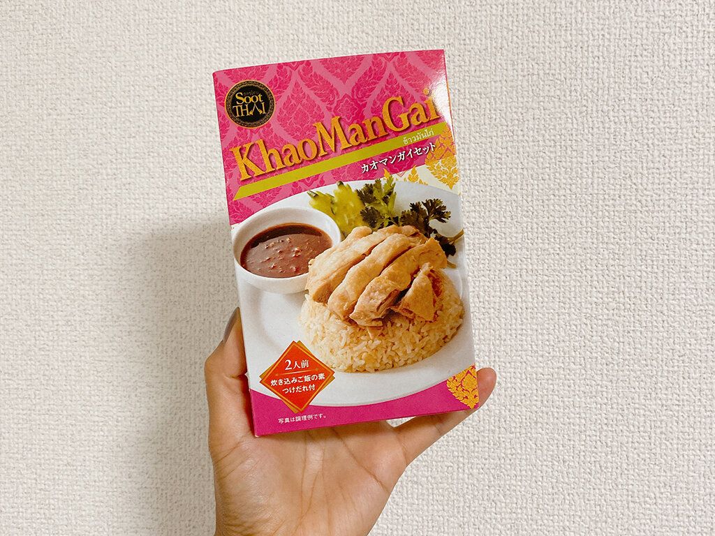 ピンクのパッケージが特徴。スータイから出ているカオマンガイセット。鶏肉を用意すれば本格的なタイのカオマンガイが作れます。