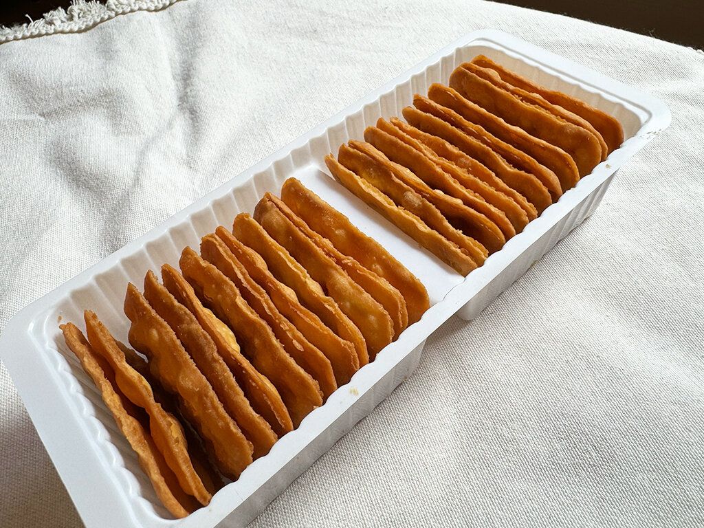 ジャガイモの風味がとてもしっかり出ていて、ビスケットとポテトチップスの中間のような