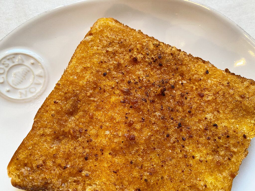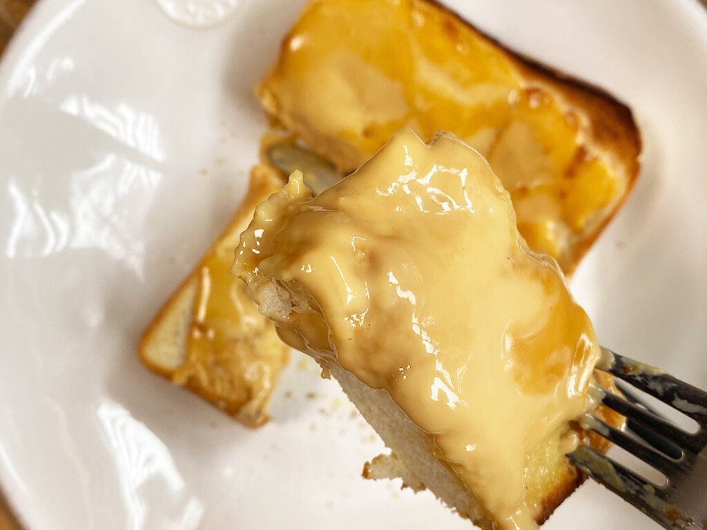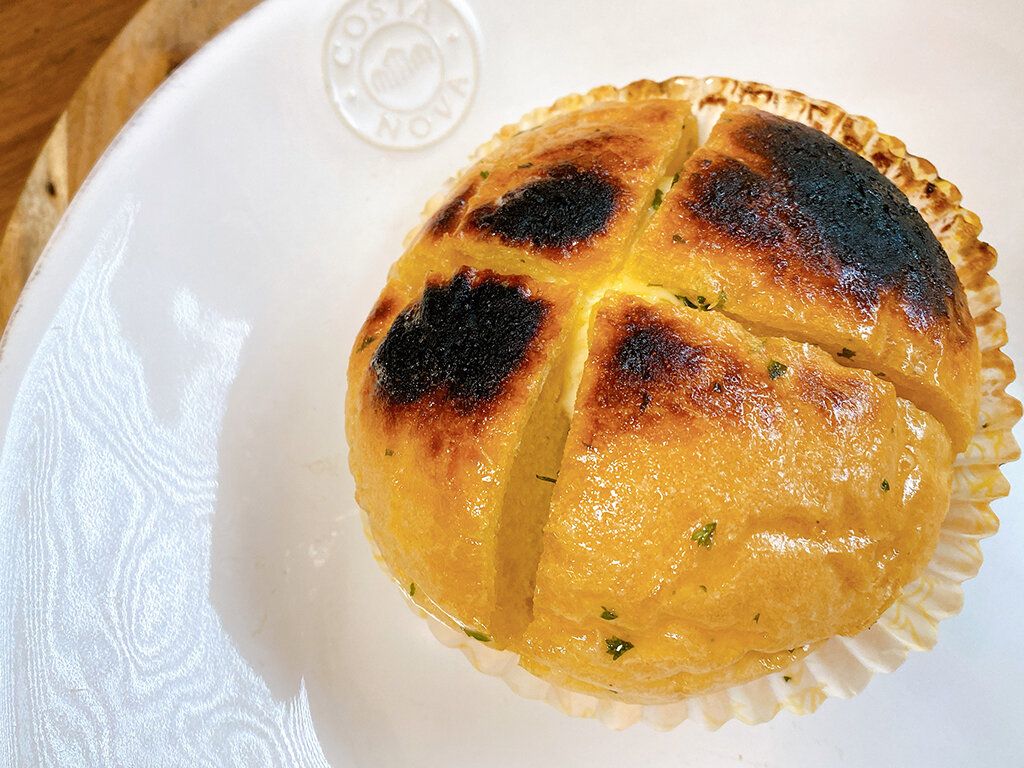 マヌルとは韓国語でニンニクのことらしいのですが、外側はガーリックトーストのような様子。中にはなんと甘じょっぱいクリームチーズが入っていて、周りのパンを切って中のチーズをつけて食べていきます。