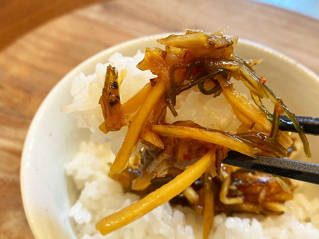 青唐辛子がいいアクセントになっていて、このタレだけでご飯が何杯でもいけそうです。