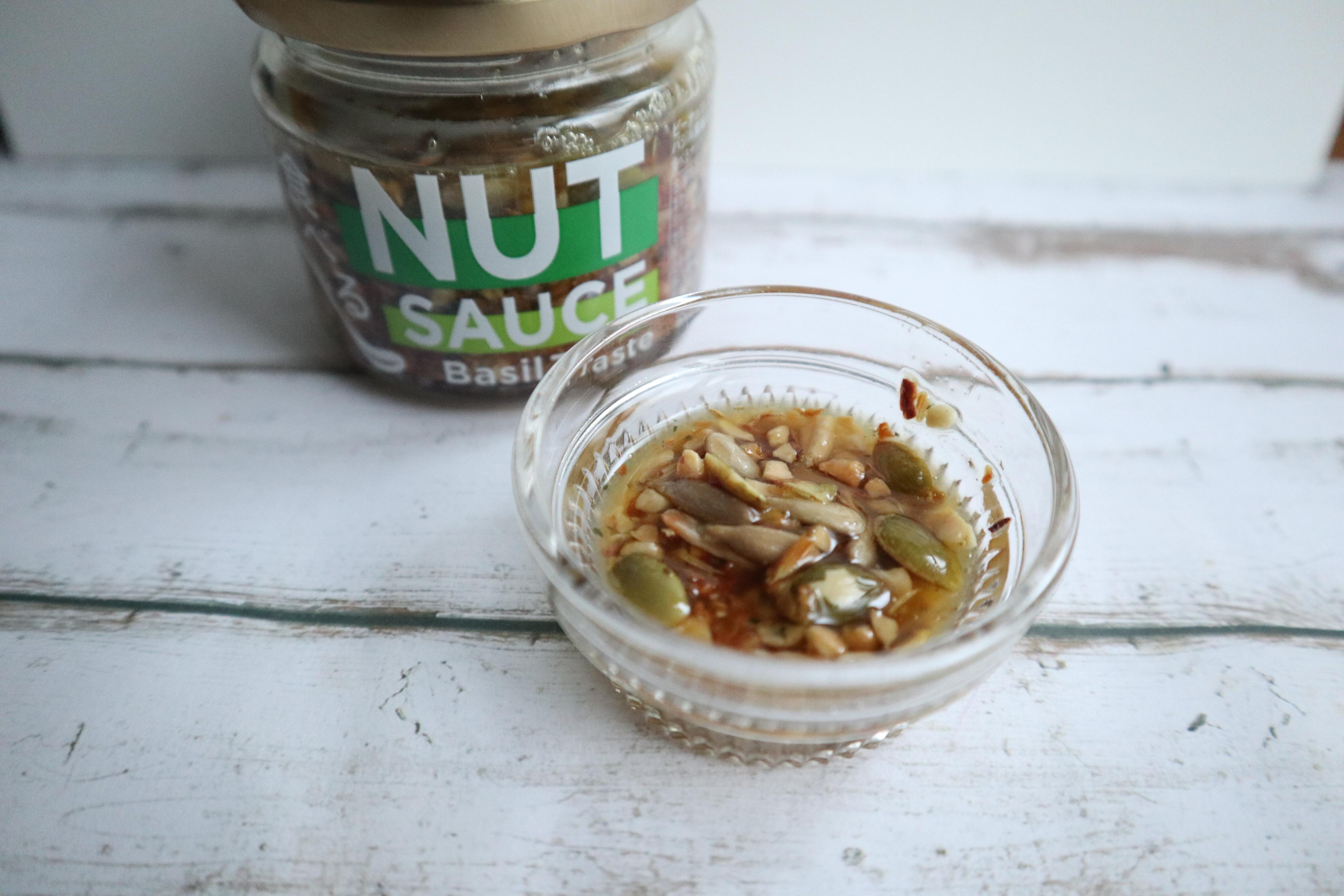 ナッツのソースも簡単につくれます。生クリーム(電子レンジで少し温める。600Wで30秒ほど。)大さじ2とバジルナッツソースを小さじ3加えて塩で味を調えたら完成です。