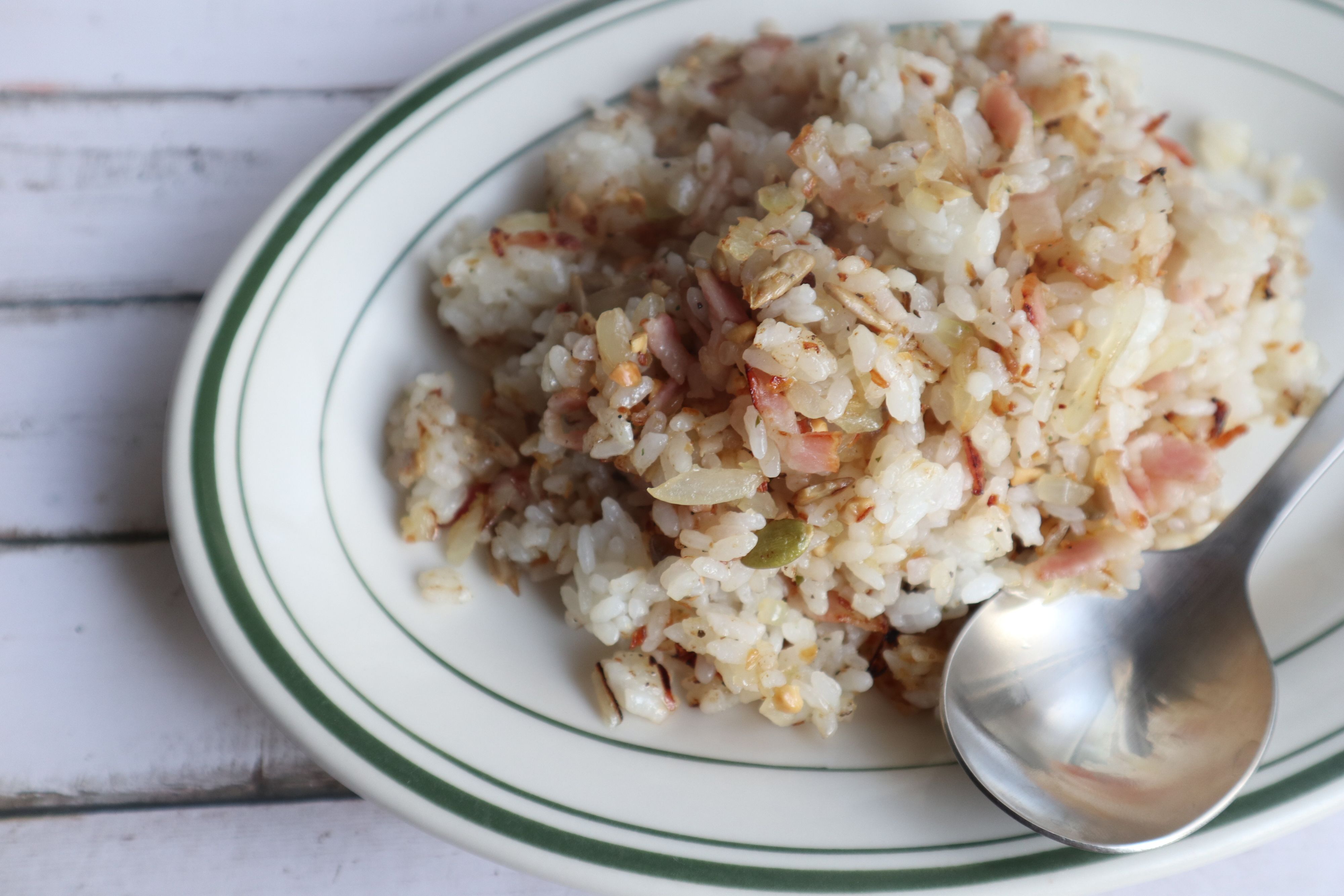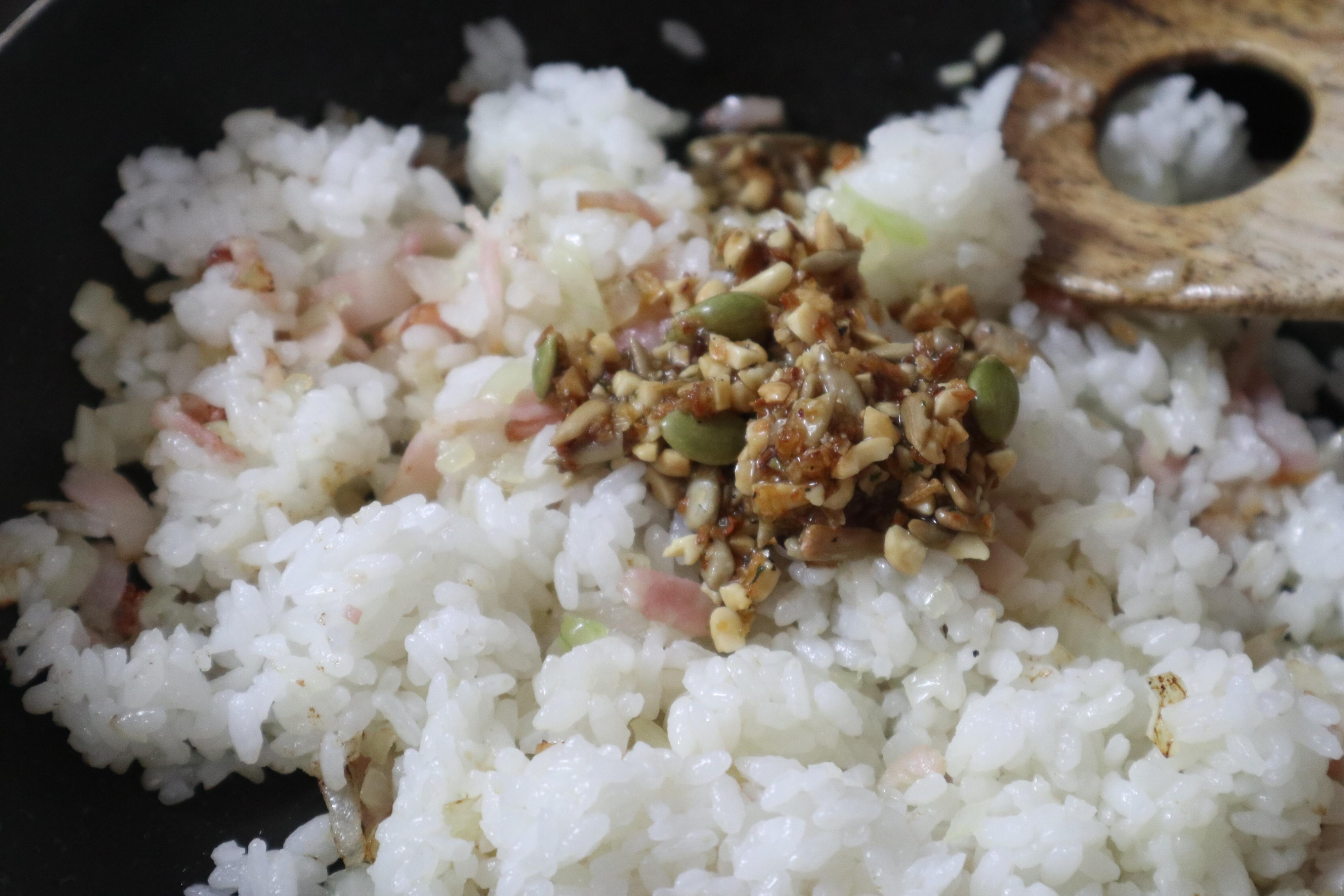 ナッツとベーコンのピラフ