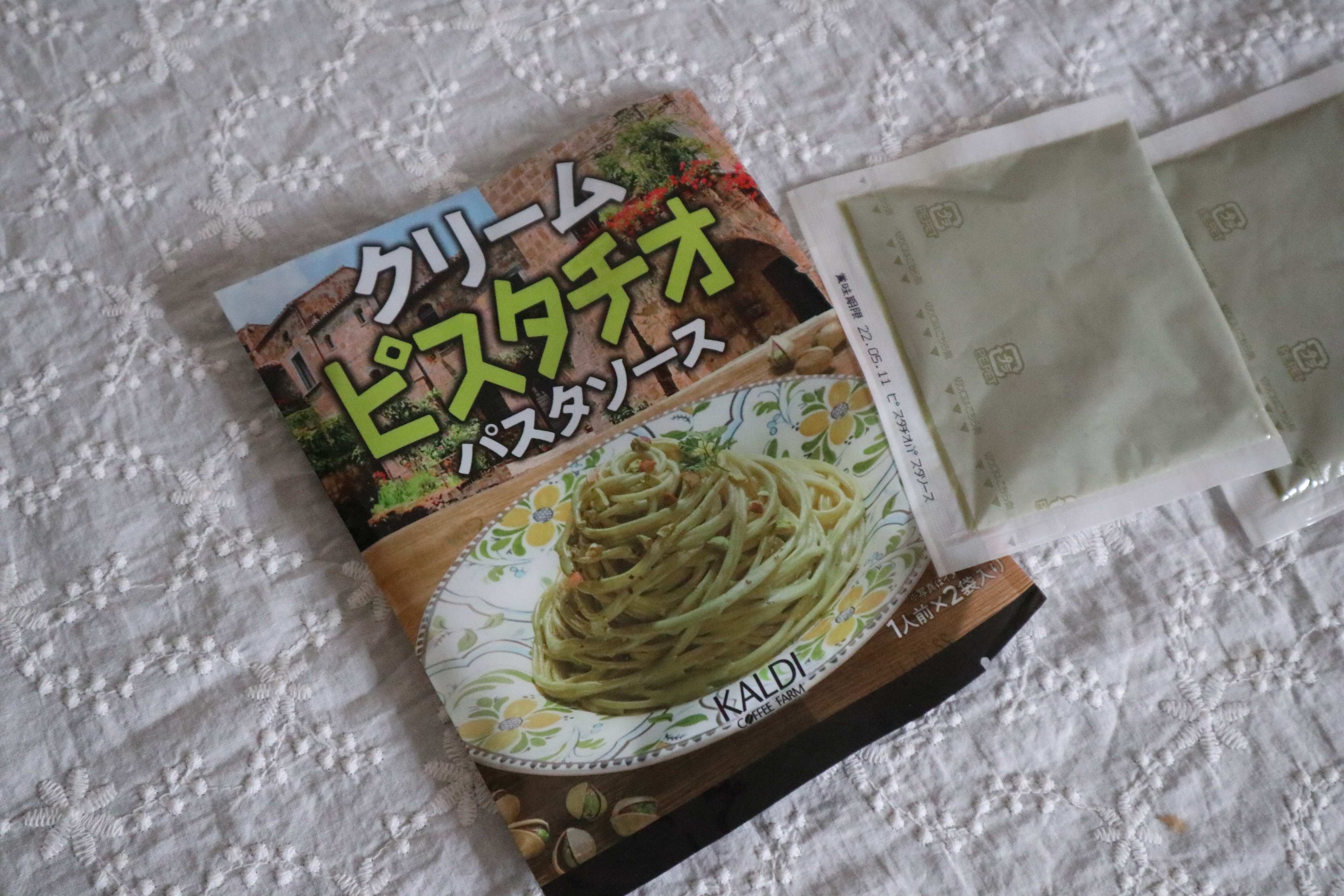 まずご紹介するのは、カルディ「クリームピスタチオパスタソース」。70g(2人前)入りで212円の新商品です。