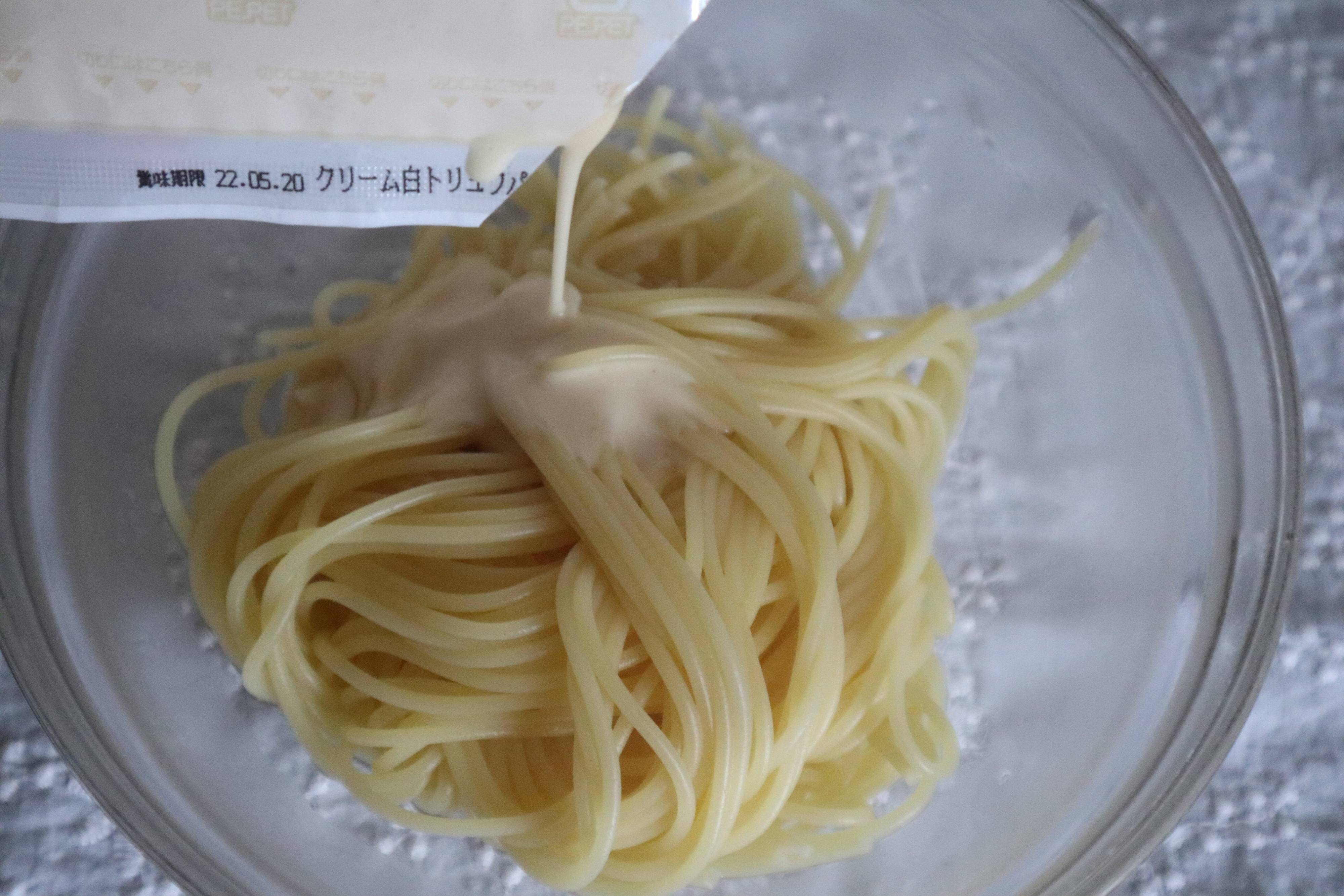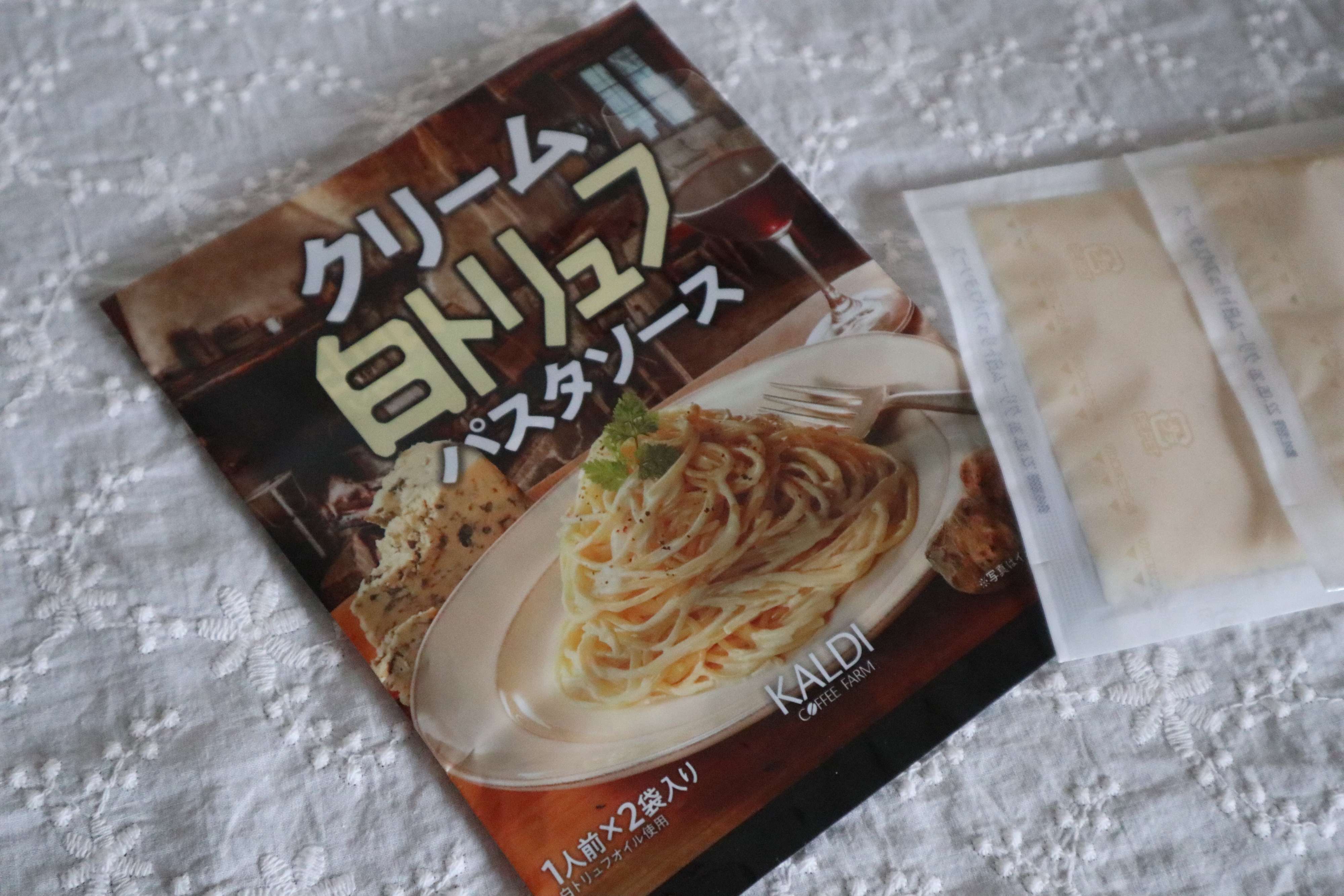 こちらも新商品の「クリーム白トリュフパスタソース」。2人前で198円。高級食品のトリュフが入ったパスタソースが100円台はコスパがいいですよね。