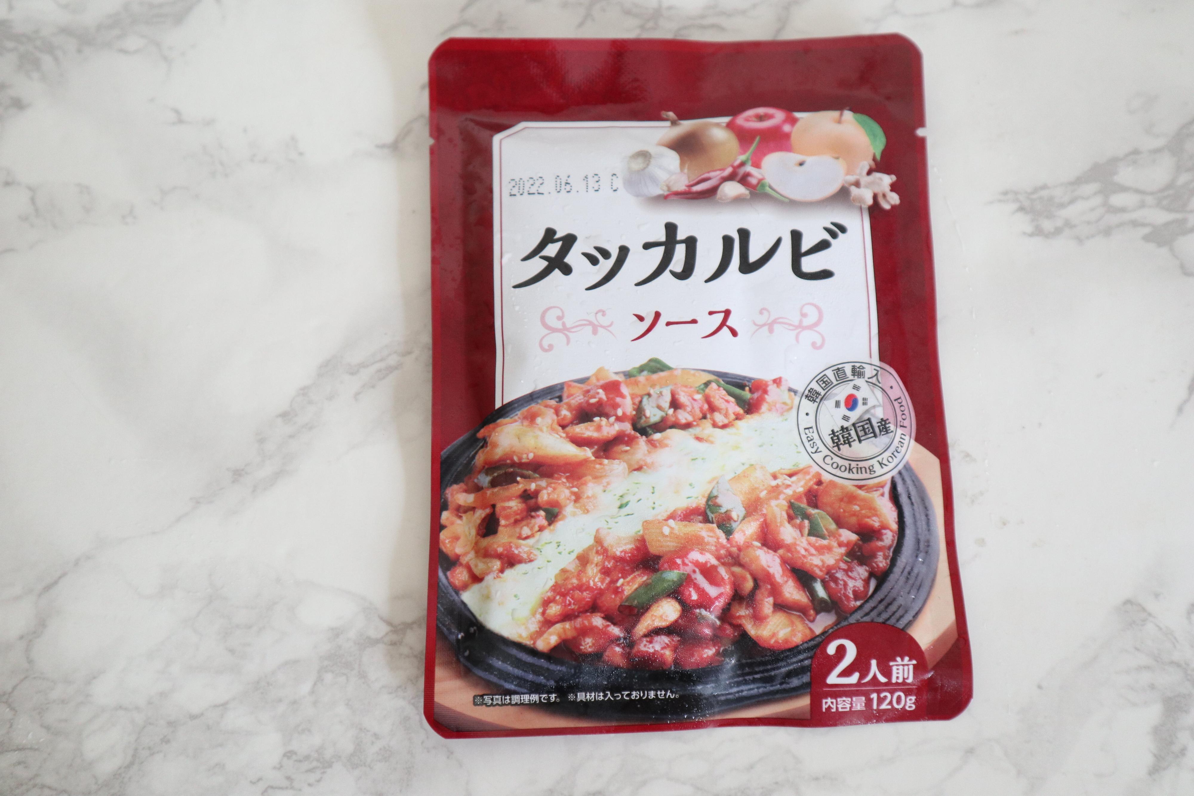 業務スーパー「タッカルビソース」。容量120gで2人前、価格108円。