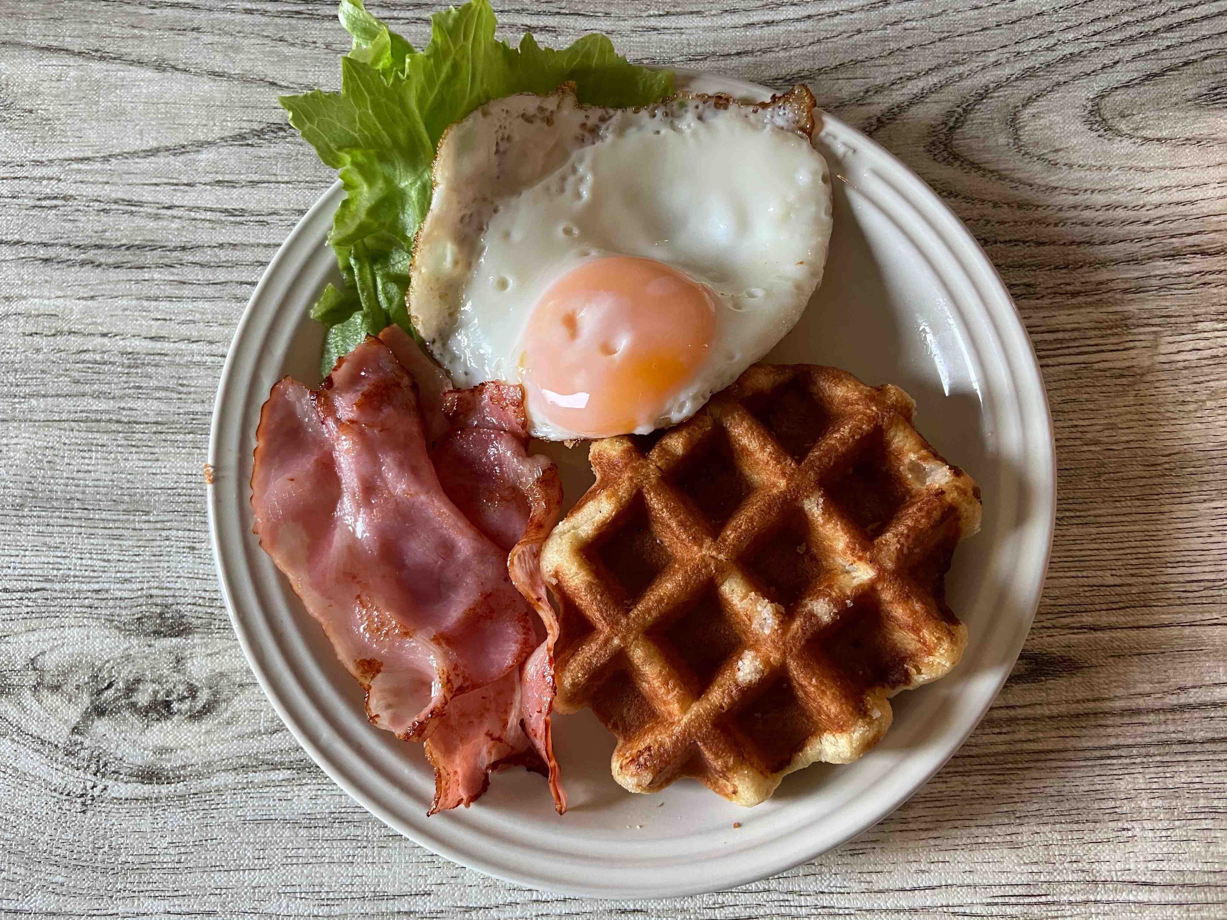 甘みのあるベルギーワッフルは、おやつとしてももちろん、ベーコンや目玉焼きを添えて朝食としていただくのもおすすめ。ベーコンの塩気とワッフルの甘みが絶妙にマッチして、甘じょっぱい組み合わせがやみつきになりますよ。