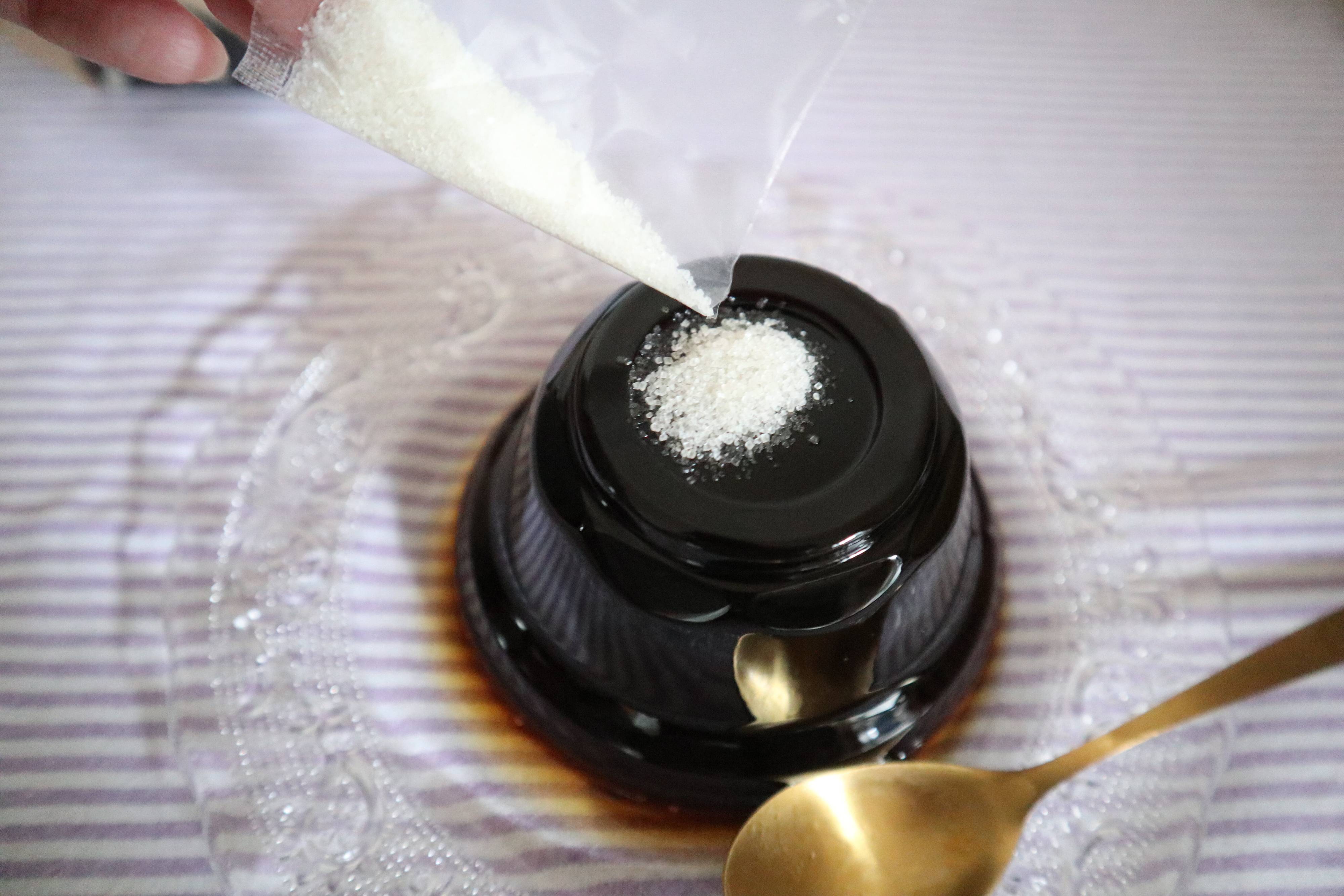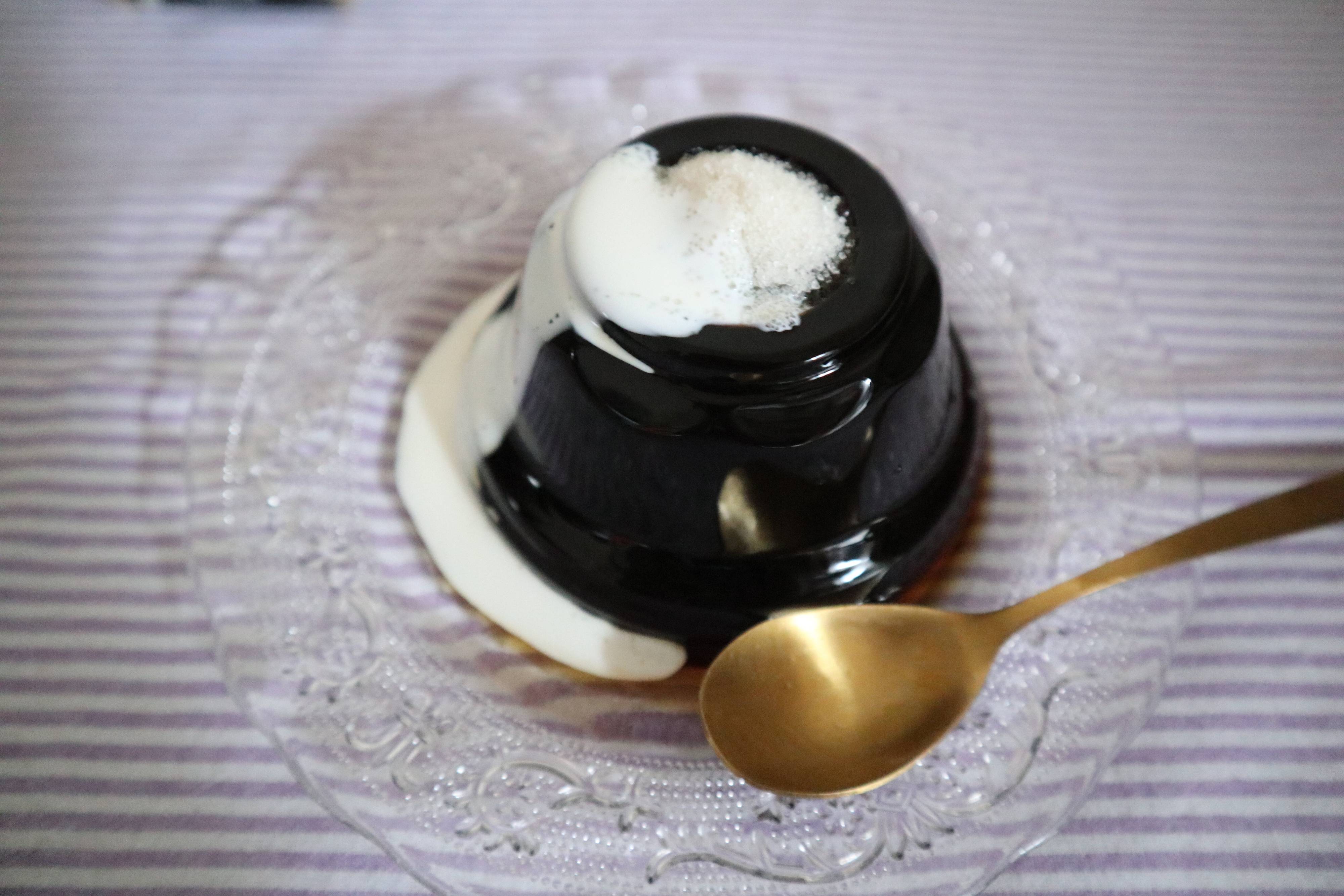 コーヒーゼリーを容器から出すときに、底が上になるように出すとコーヒーシュガーをのせるポケットがあります。
