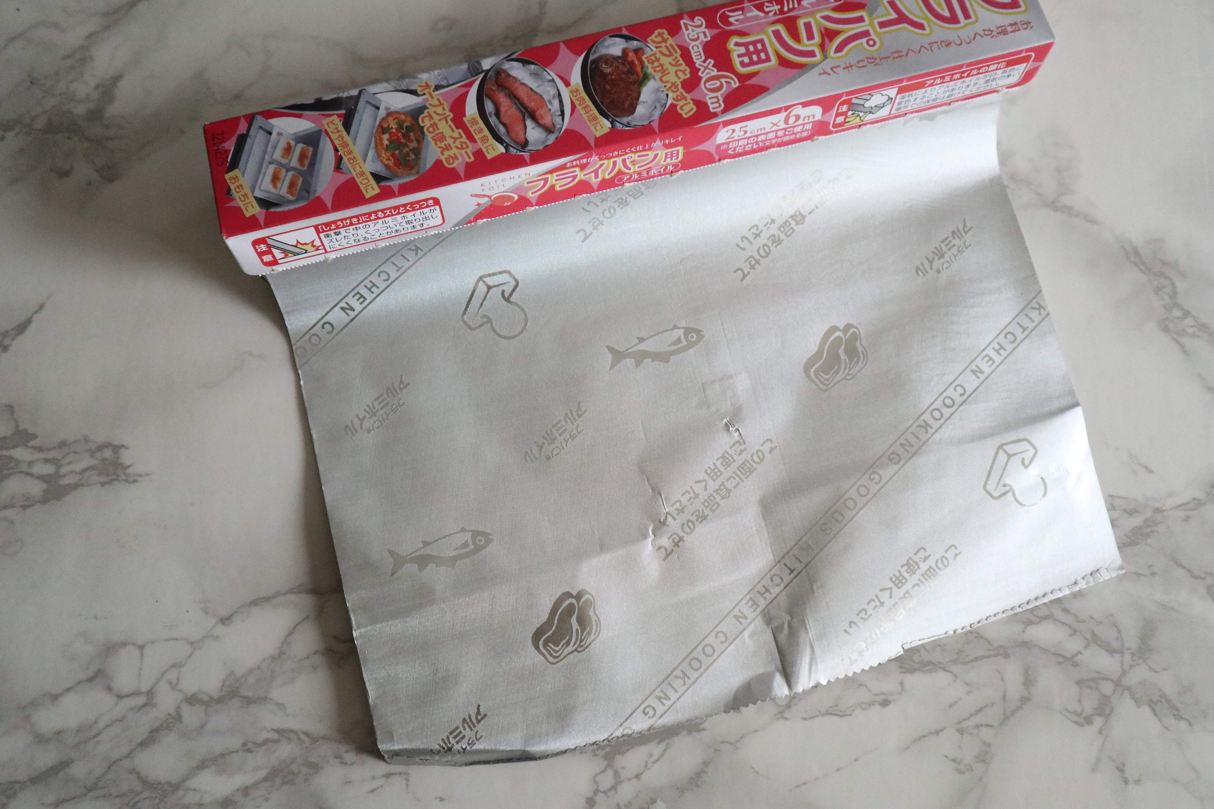 鶏の照り焼きなどの調味料を煮詰めて照りを出すような料理もそのあとの洗いものが一仕事ですよね。テフロン加工のフライパンだとあまりこすりたくないし……フライパン用のアルミホイルを使えばその心配も無用です。