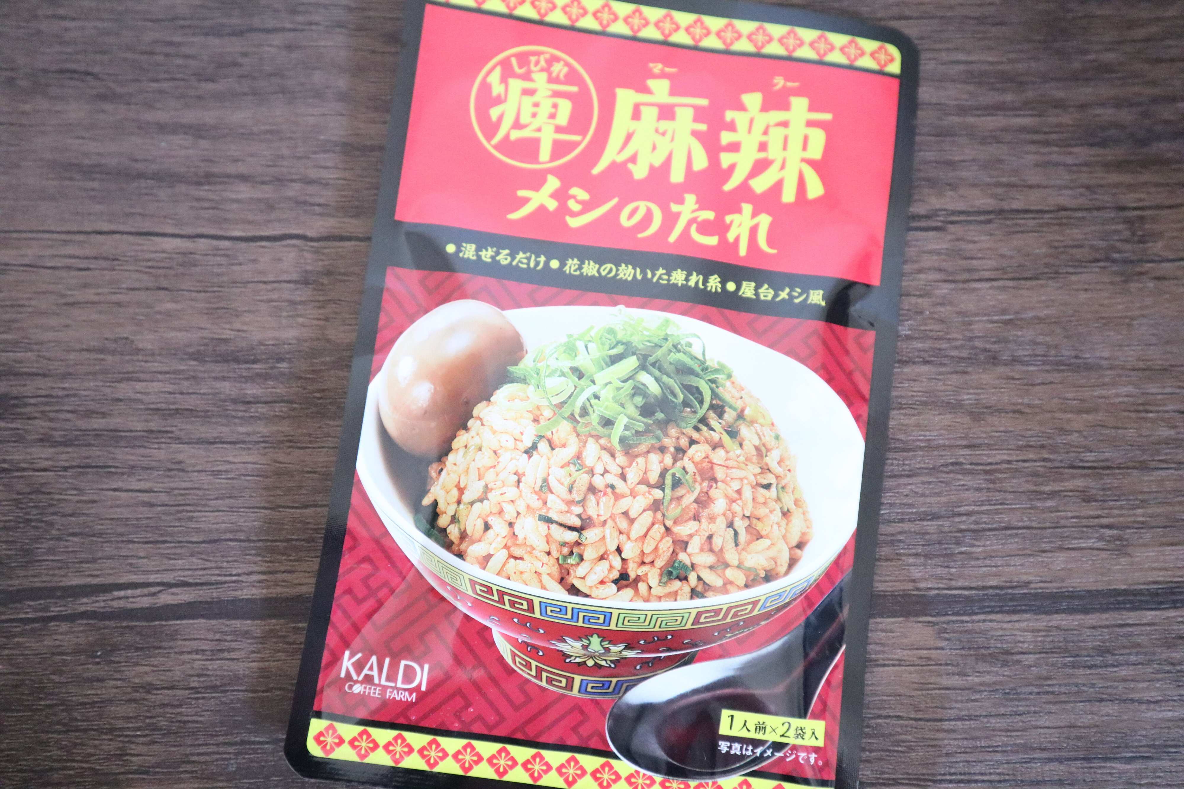 もうひとつおすすめしたいのが、カルディ「痺麻辣メシのたれ」。2人前で198円です。花椒の効いたしびれ系屋台飯です。