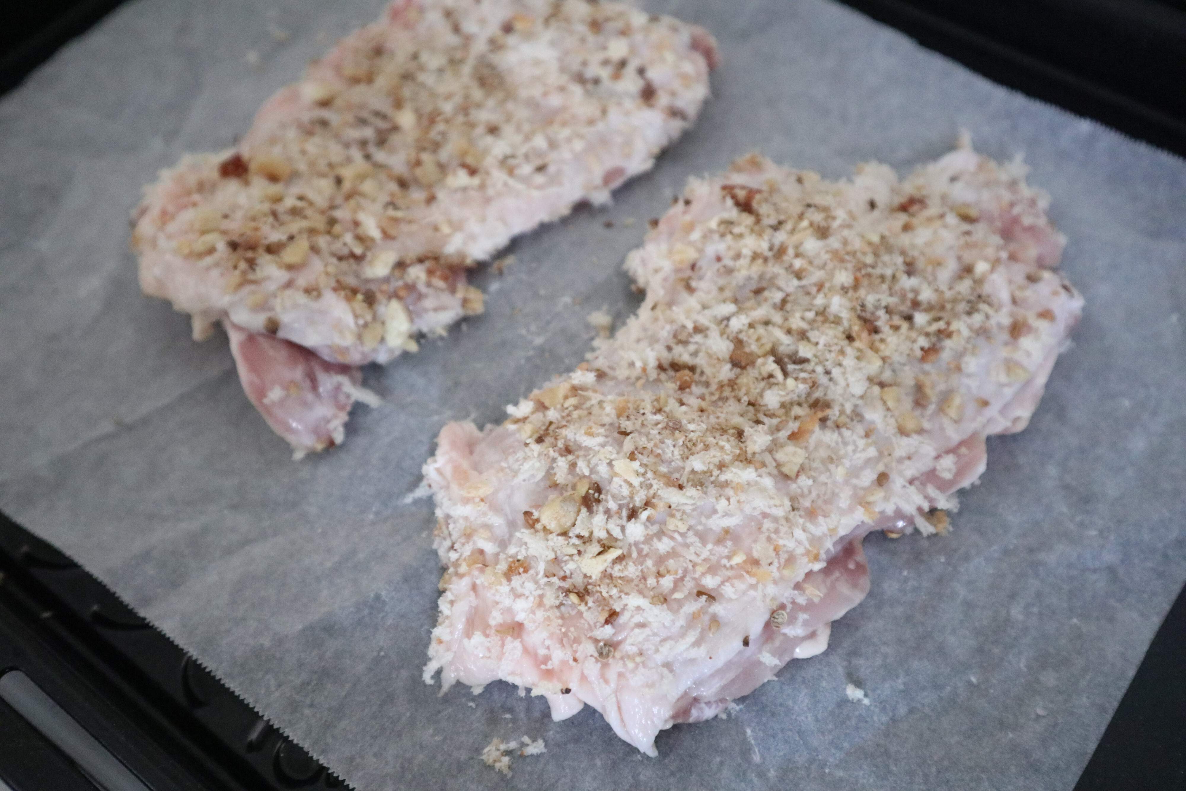 デュカを使うとチキンの香草パン粉焼きも、あれこれ材料をそろえなくていいから手軽。