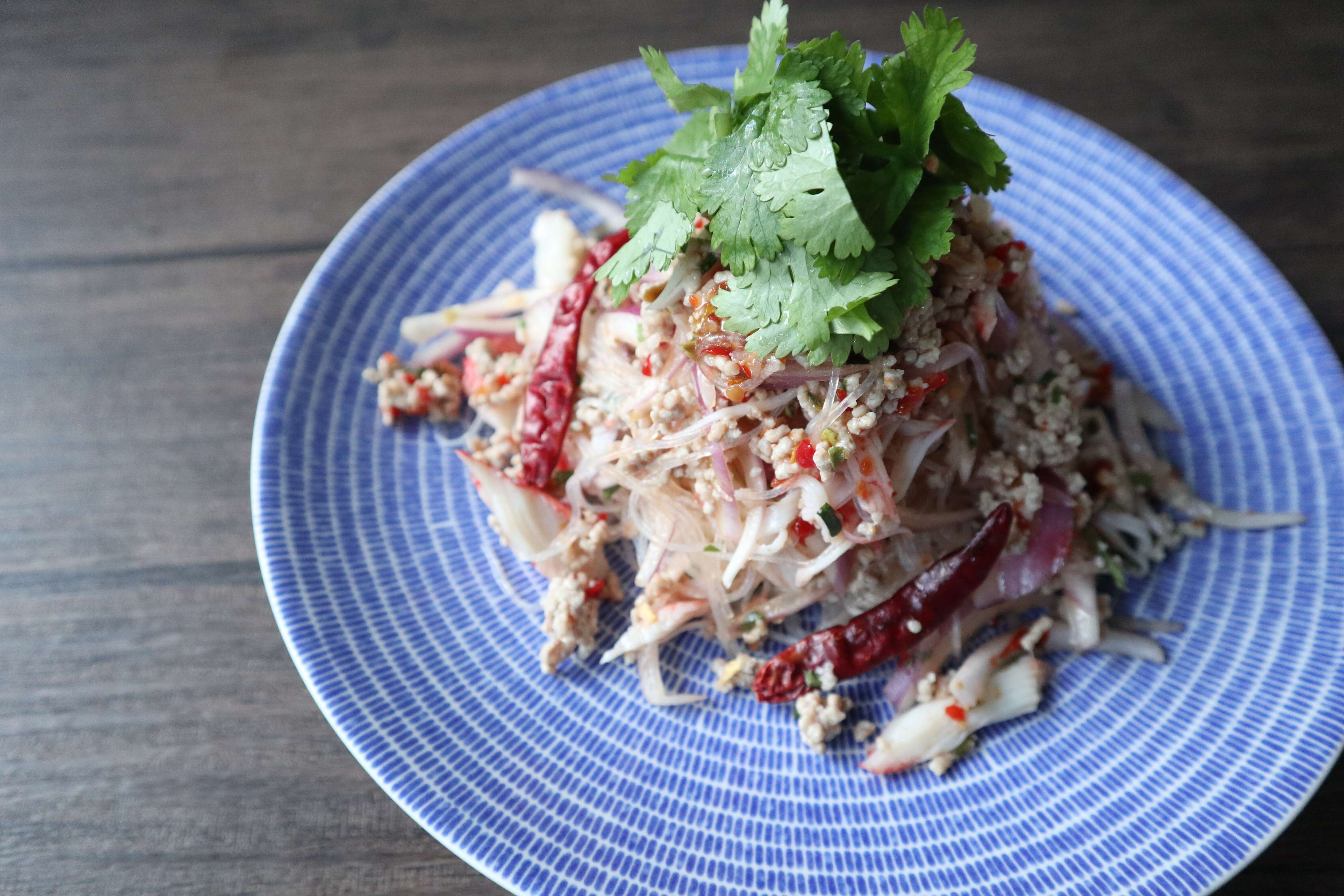 ヤムウンセンとはタイ風春雨サラダで、タイを代表する料理の一つです。ヤムは混ぜる、ウンセンは春雨を意味します。