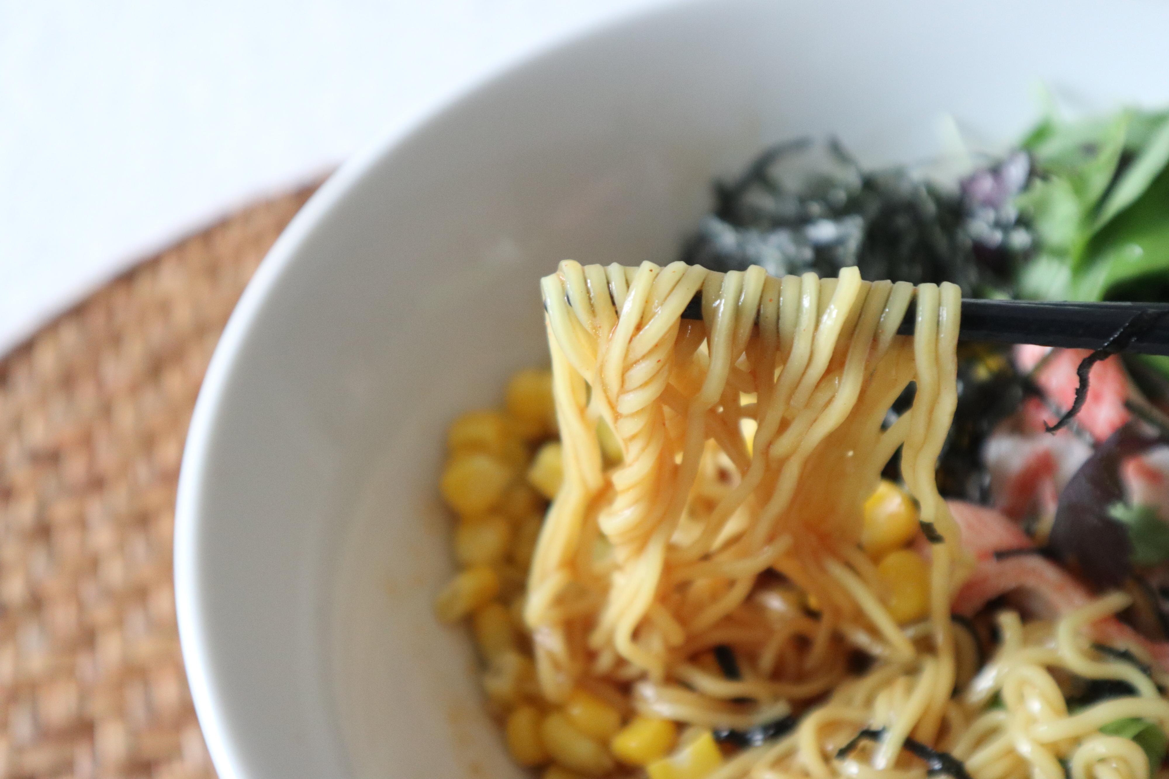 乾麺なのに麺もちゃんとおいしいのは、さすが製麺の会社といった感じです!ちゅるんとのどごしのいい麺なので、そこも味わってほしいです。