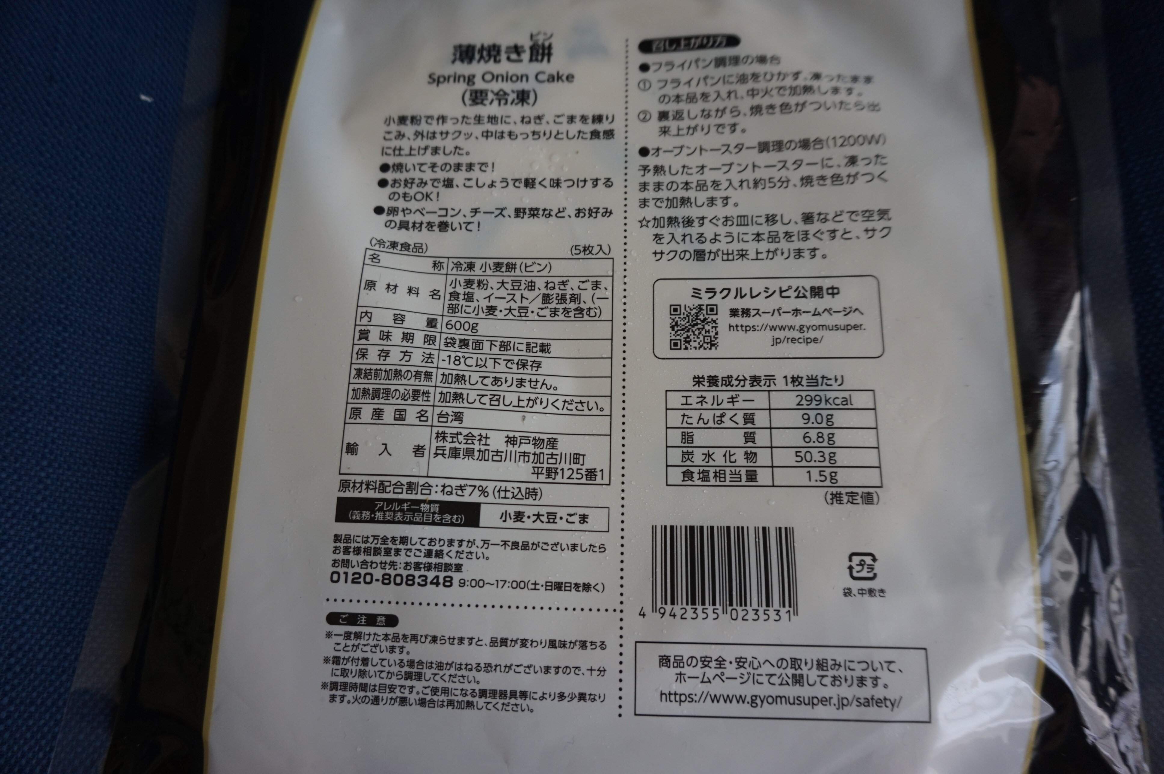 業務スーパーで販売されている薄焼き餅は、台湾の屋台料理「葱抓餅(ツォンジュアビン)」を急速冷凍したものだそうです。