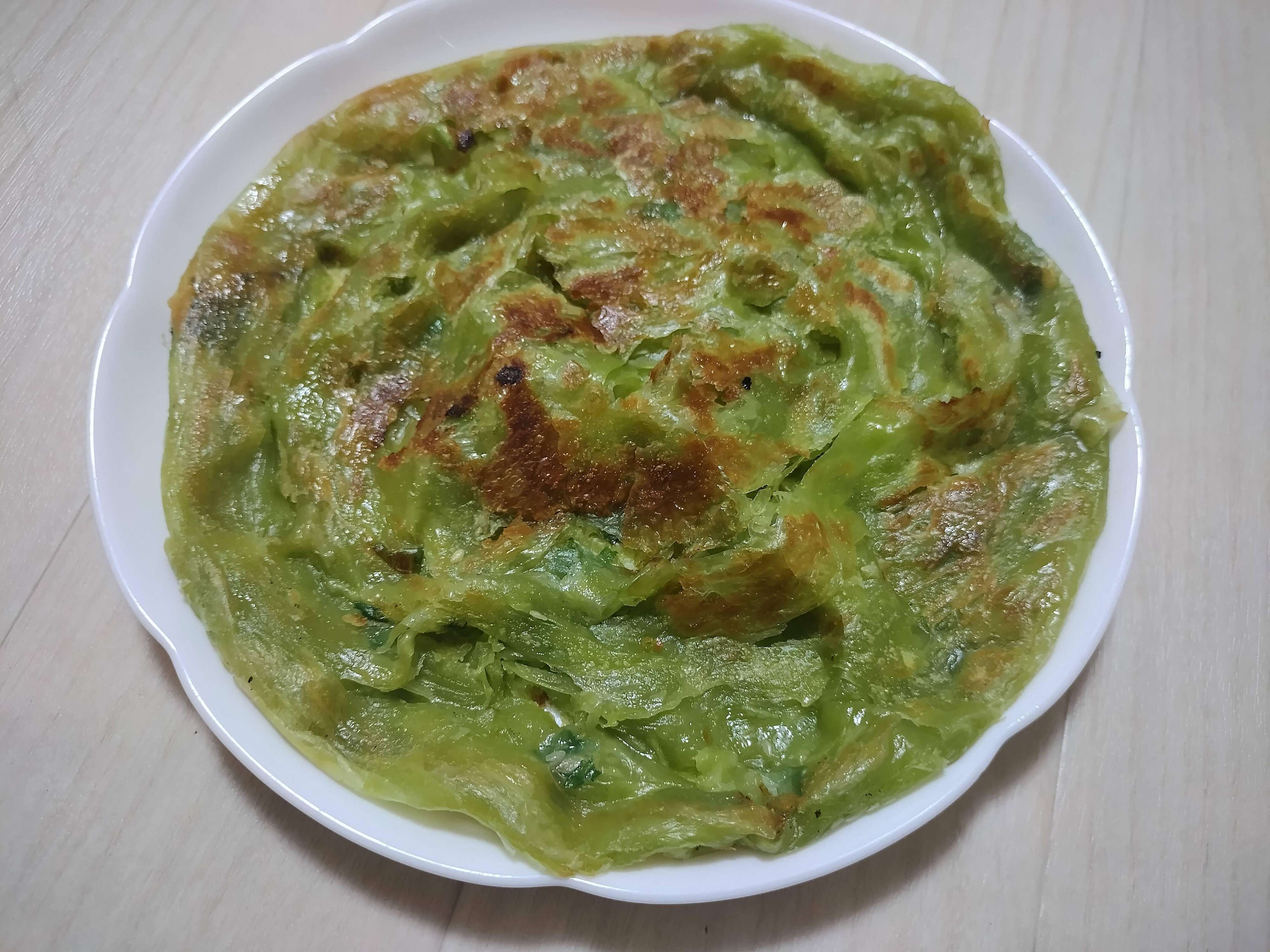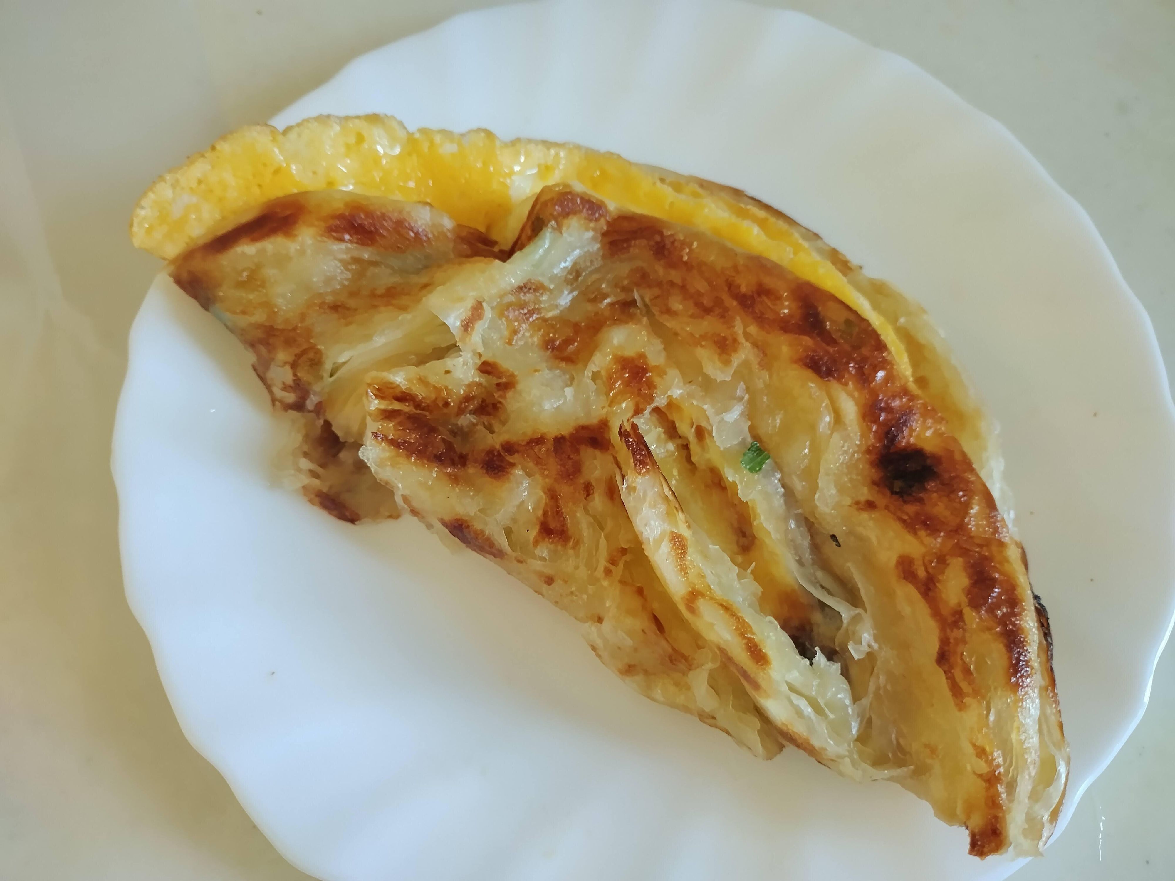 そのままでもおいしいとのことだったので、とりあえず「青ネギ入り」を焼いて塩コショウを振って食べてみました。パッケージには漢字で「餅」と書いてありますが、餅の要素はあまりありません。何層かになっている薄いパイ生地で、ネギが香り、生地はサクサク。部分的にもっちりしていて、シンプルな味わいながら予想以上の味わいです!