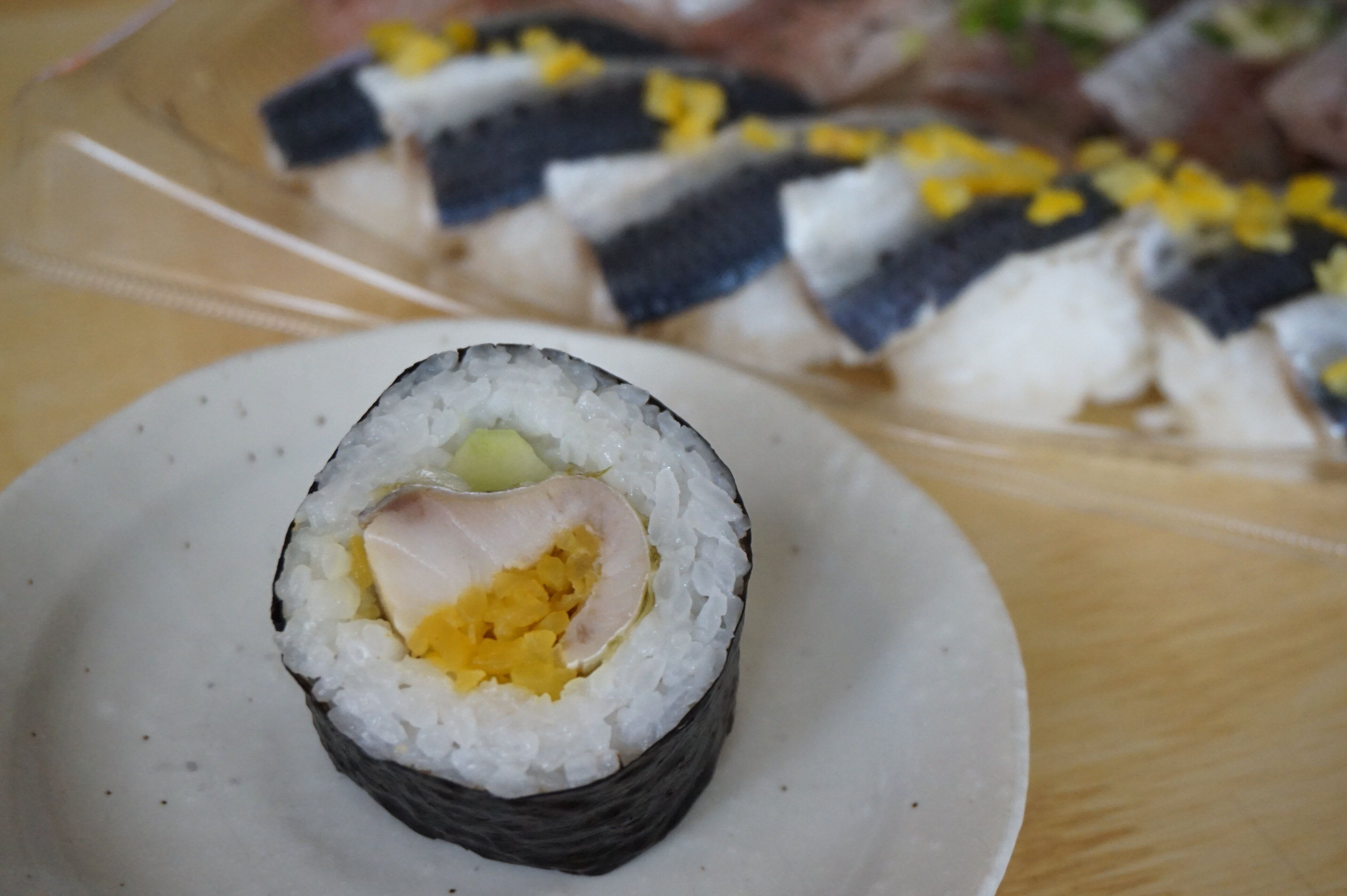最後にご紹介するのは、さばののり巻き。脂ののった新鮮なさばとシャキシャキのたくあん、みずみずしいきゅうりが絶妙にマッチしています。これもおいしい!