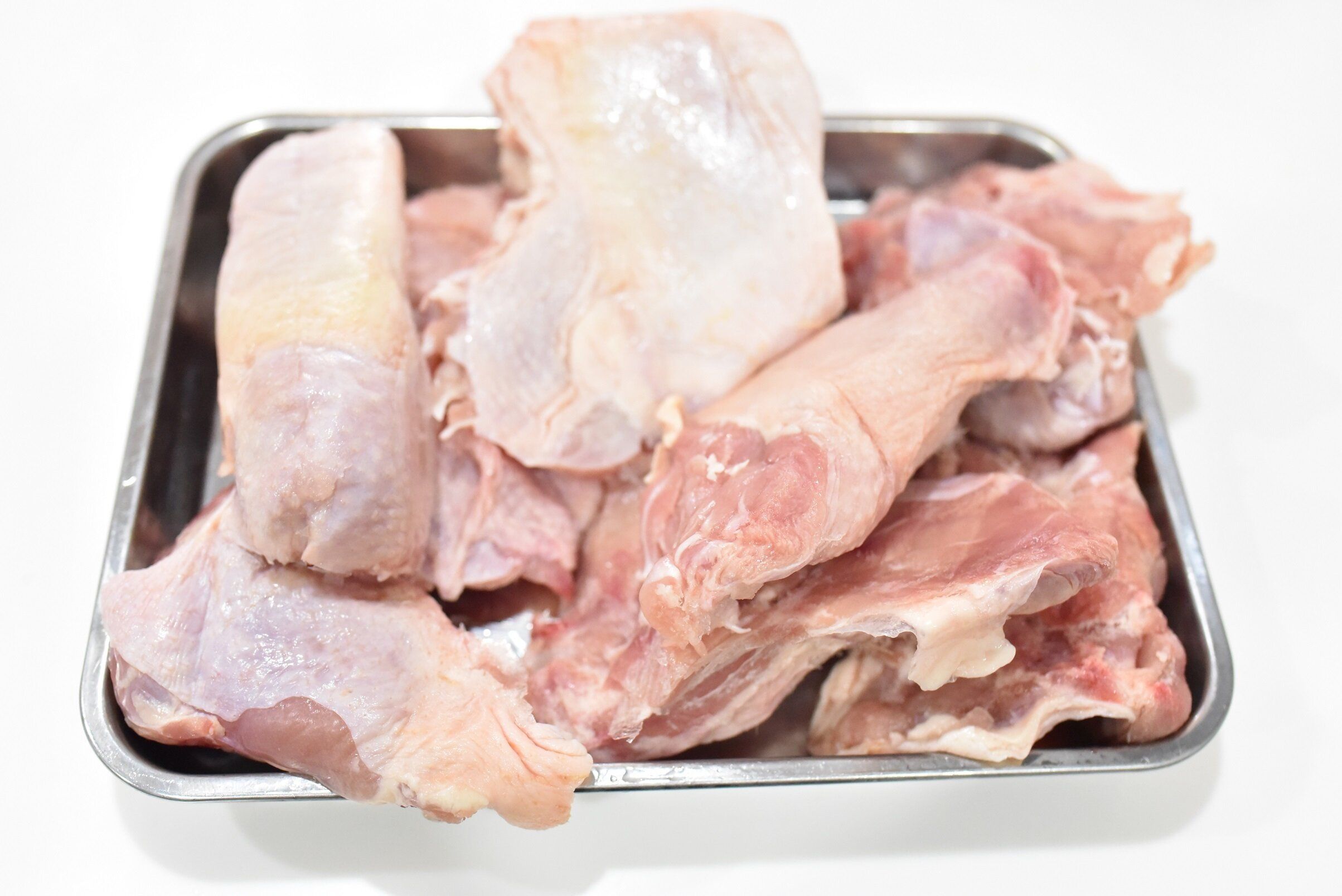 ちなみにブラジル産の鶏もも肉は、国産の鶏もも肉に比べて、少し小ぶりでさっぱりした肉質になります。肉の厚みが少ない分、火の通りが早く、味の染み込みもいいです。にんにくやスパイスの効いた料理、照り焼きなどの濃い目の味つけの料理によく合いますよ。