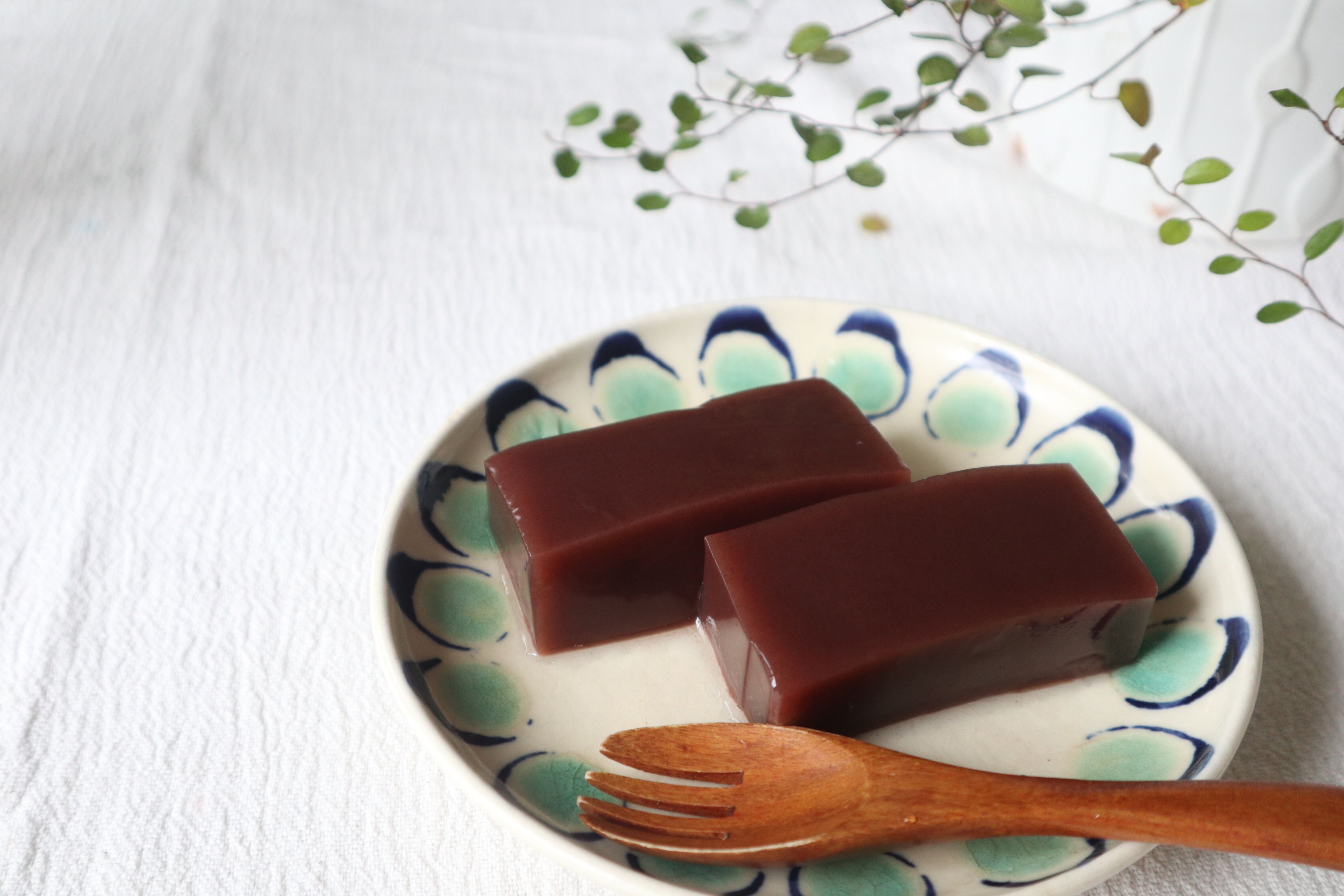 液状にしたようかんを器に流し入れて冷蔵庫で冷やして固めます。