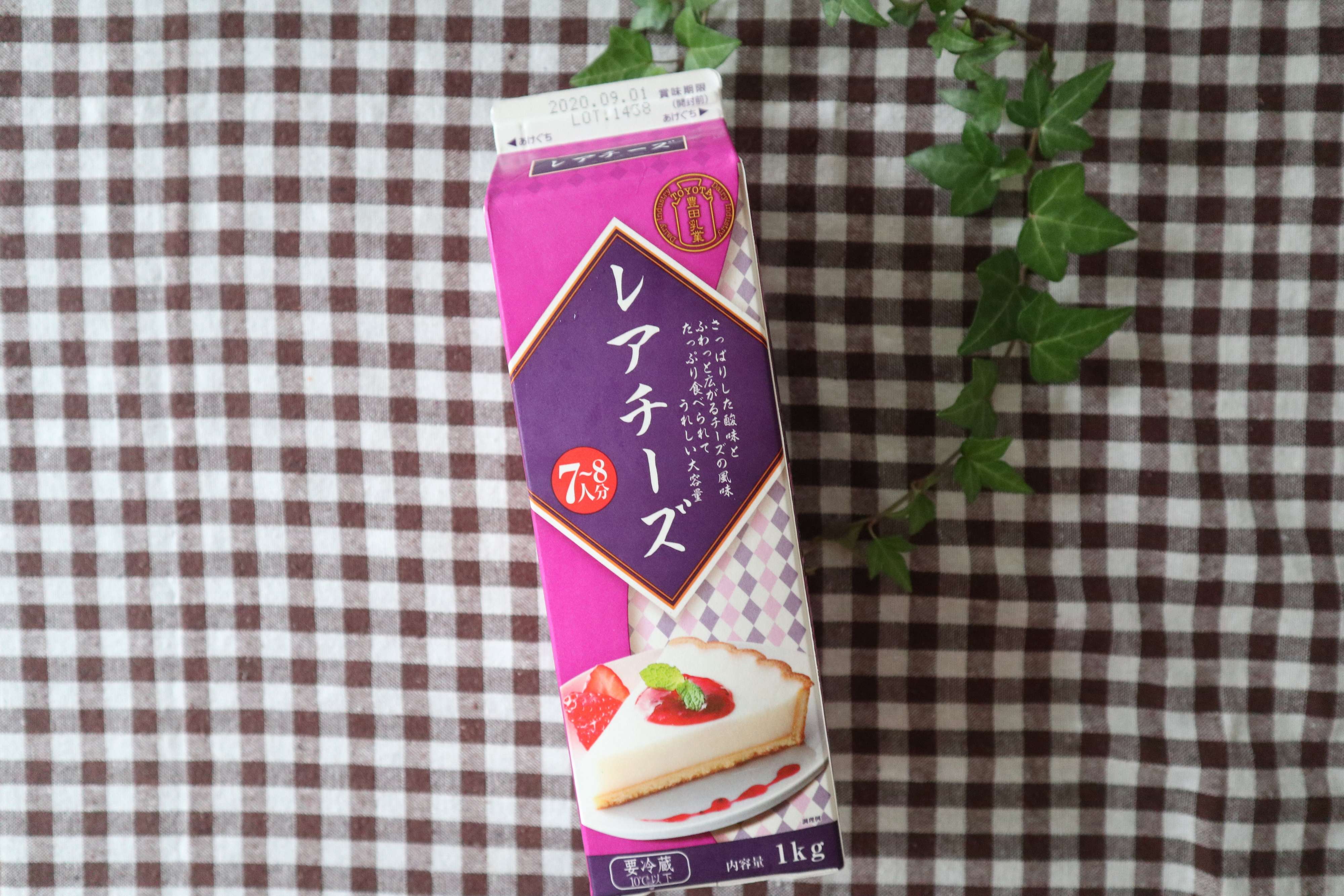 業務スーパーのレアチーズケーキ298円。大容量の8人前入り。