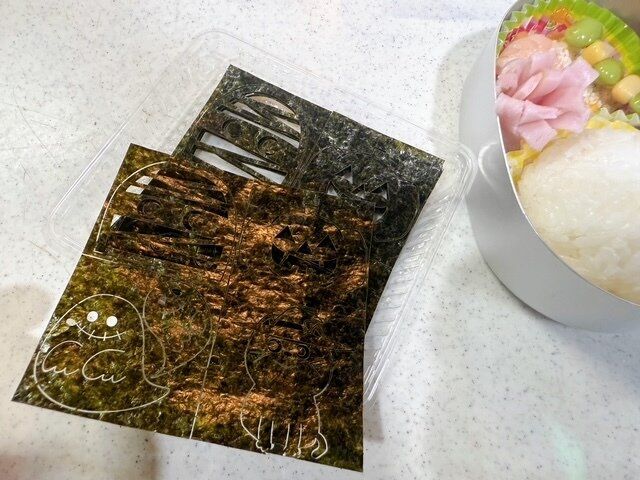 もちろんこれも海苔なので食べられるのですが、キャラ弁に使うとなるとちょっと扱いづらい…。