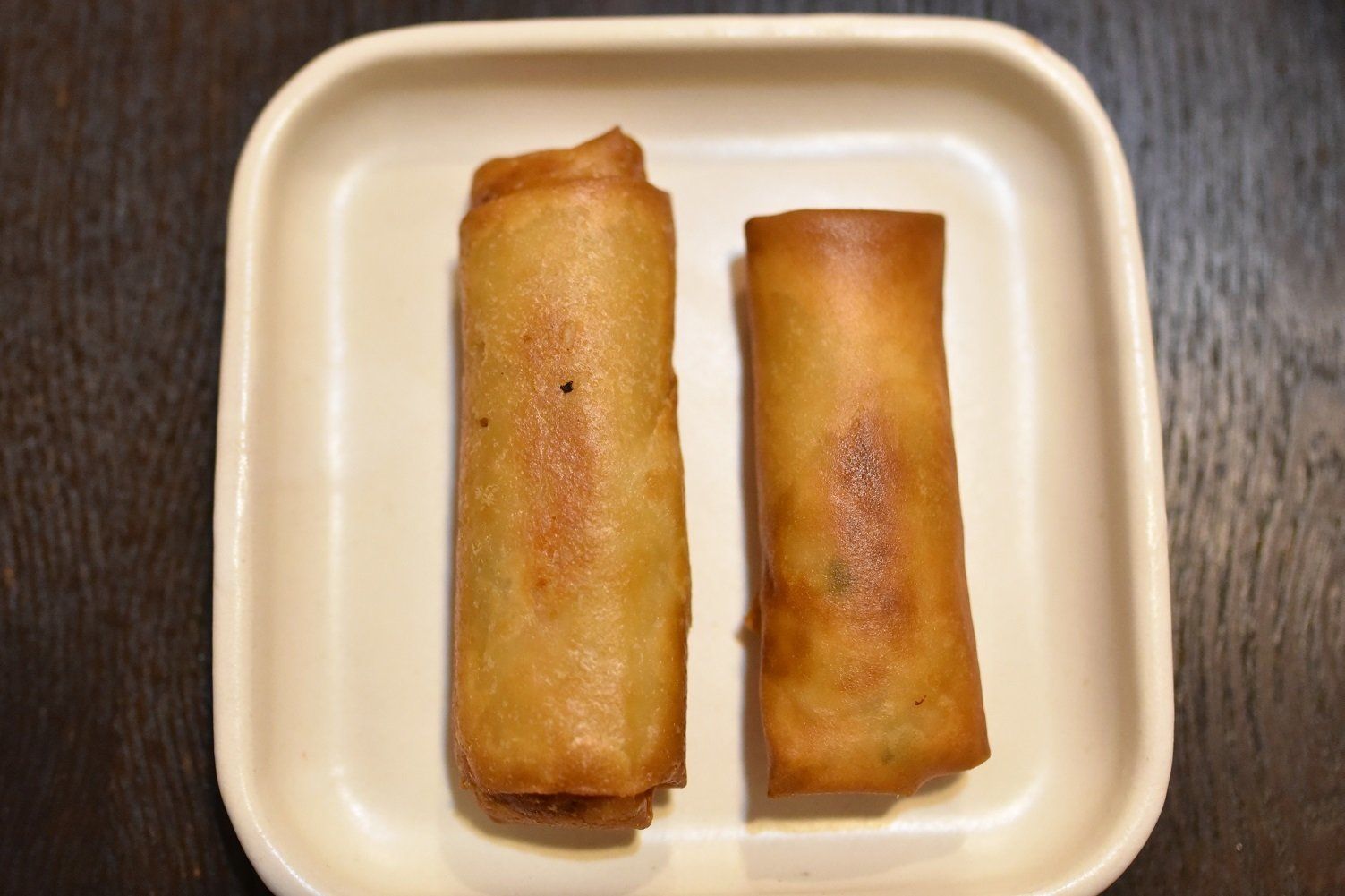 左側の少し大きめなのが「五目春巻き」、右側の少し小さめなのが「お肉たっぷり春巻き」です。