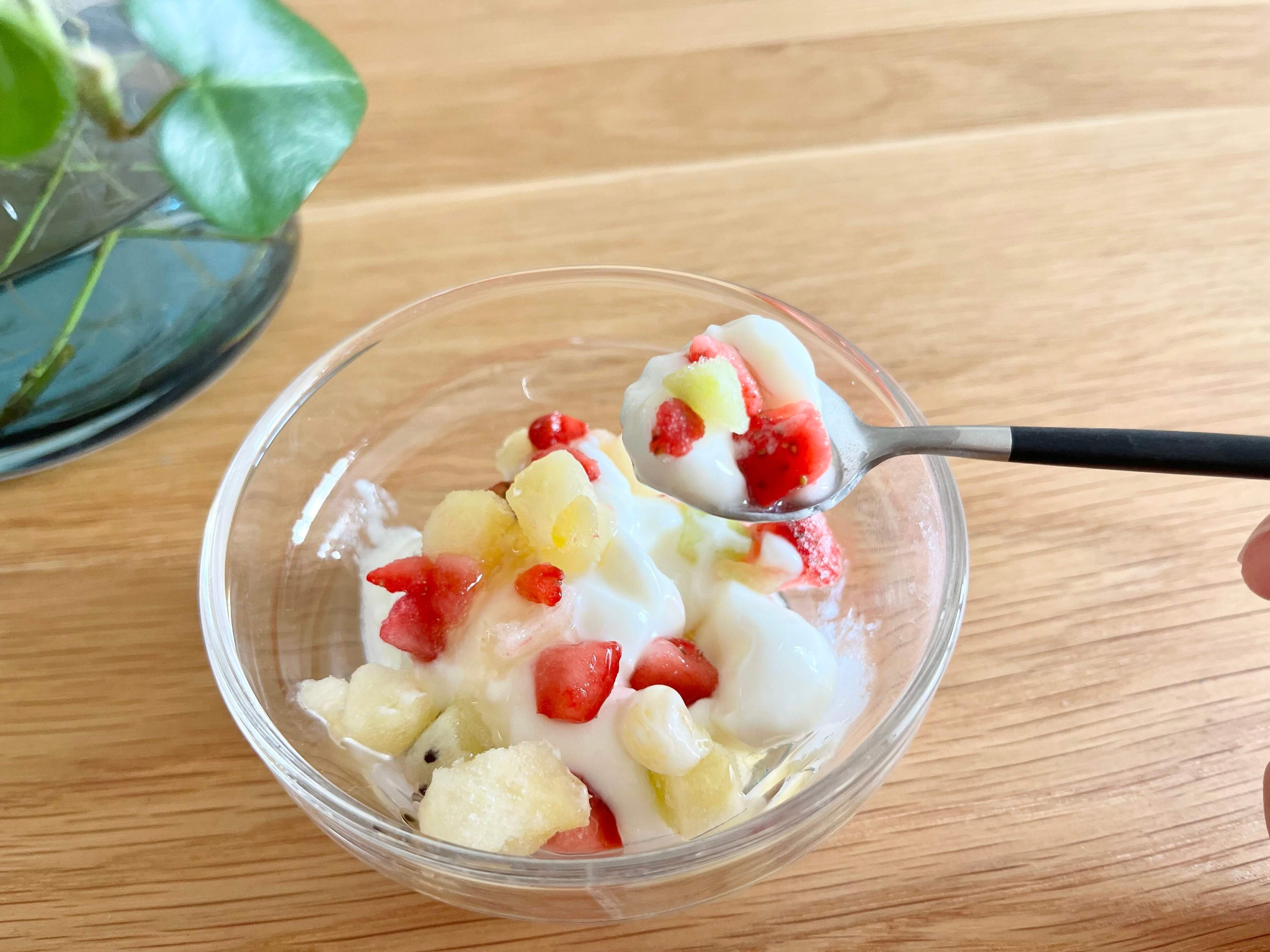 気になるお味はというと、どのフルーツも適度な酸味と甘みが感じられてとってもおいしい!カット不要でサッと振りかけるだけで手軽にかわいくトッピングできるので、まさにいそがしい朝などに最適です。トッピング以外だと、スムージーに入れるのもおすすめですよ。